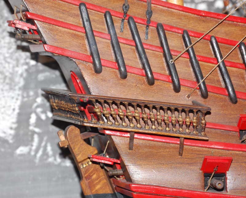 Jak już pisałem ozdoby pawęży (herb???, pławikonik, balkon) mnie nie przekonują – ta stylizacja jest zbyt uboga jak na epokę BAROKU (przypomnę kierunek rozwijający się początkowo we Włoszech i trwający od końca XVI w. poprzez cały wiek XVII w całej Europie, aż do poł. XVIII wieku w niektórych krajach). Cechował się bogactwem dekoracji i form ornamentalnych, charakterystyczne dla epoki było organiczne łączenie architektury, malarstwa i rzeźby, co również widać na modelach z epoki.