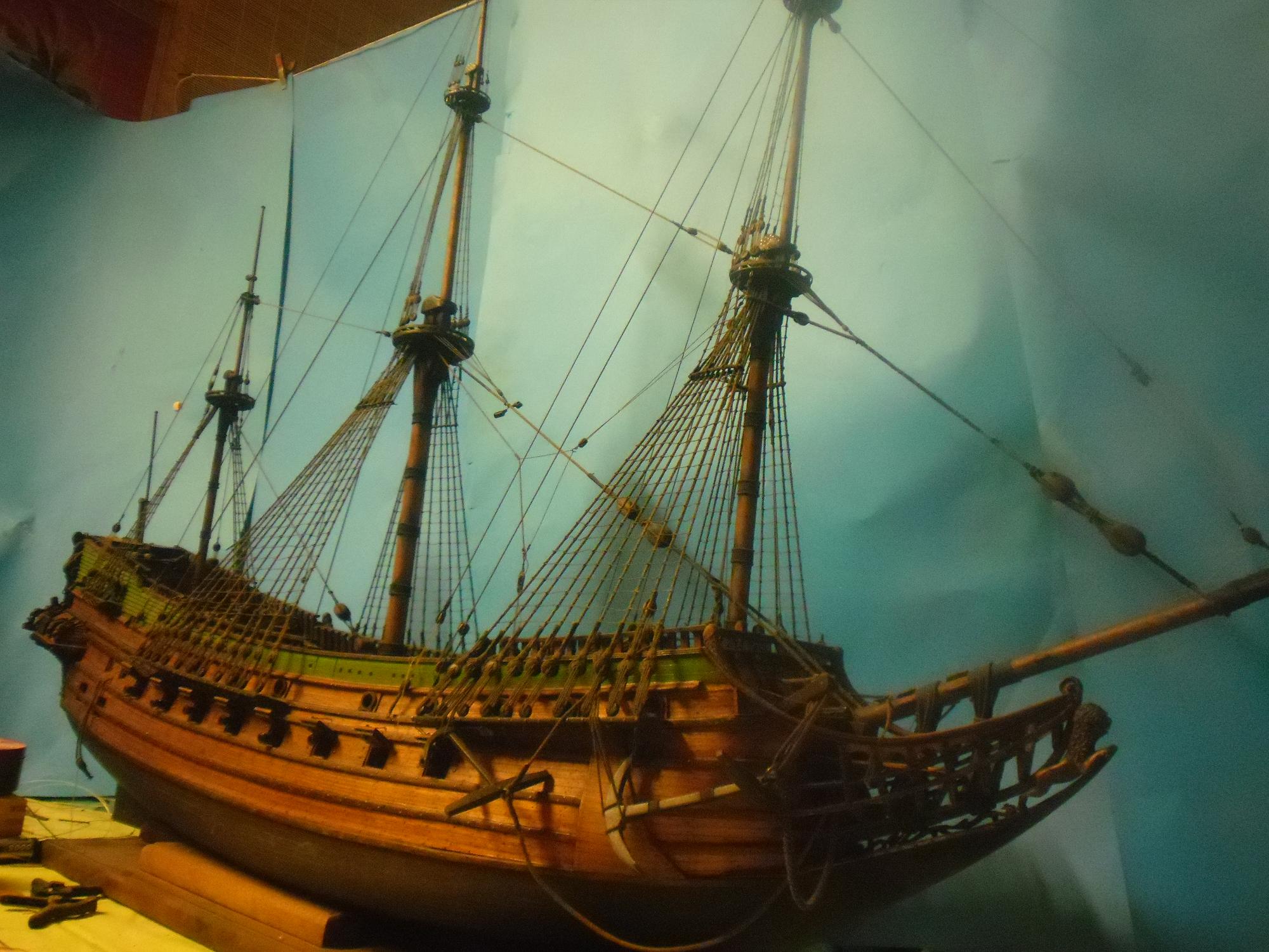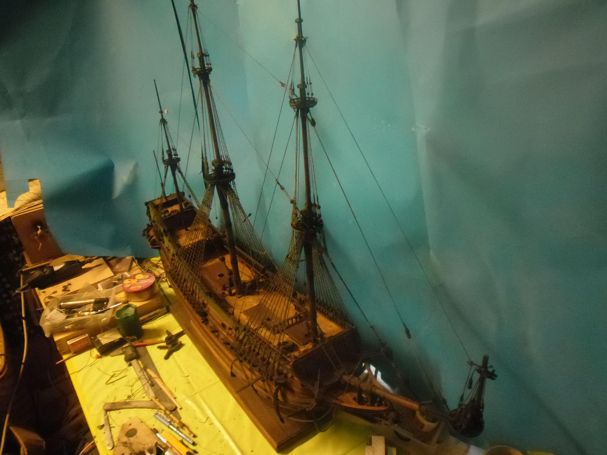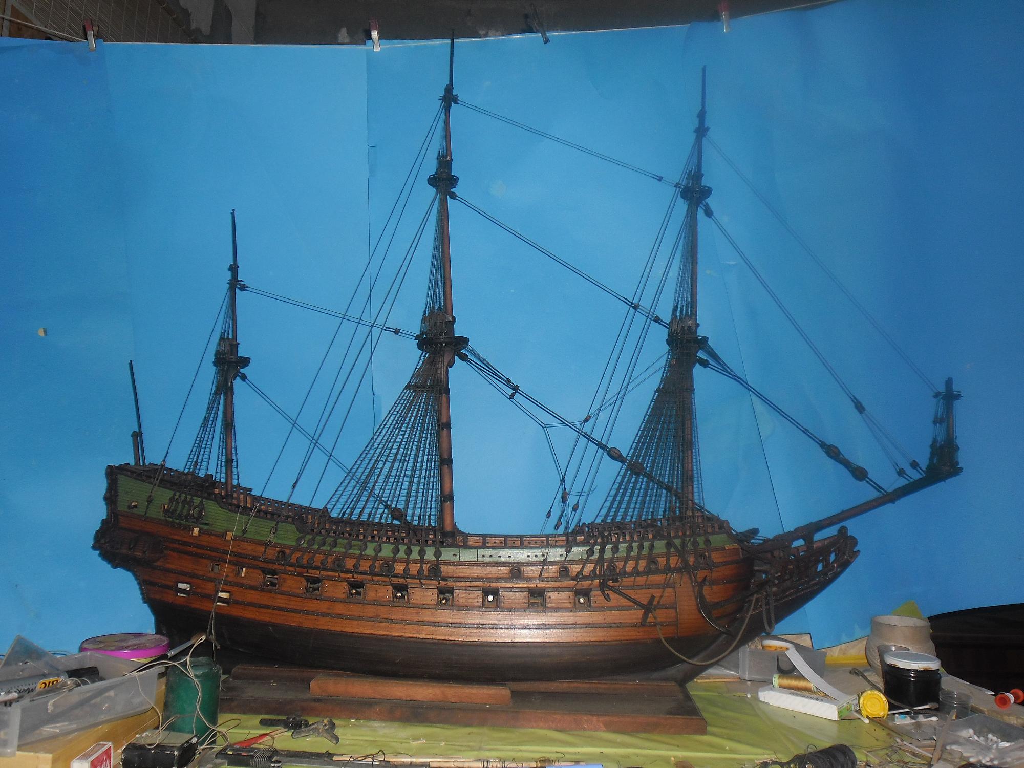 Parę fotek z postępu mojej pracy . Ciężko jest pokazać całość modelu na fotkach . Ja po prostu nie umie dobrze robić zdjęć i proszę o wybaczenie Pomalutku idzie do przodu . Linki sam kręcę i z każdą następną jestem mądrzejszy . Jak na pierwszy model żaglowca i moją ślepotę to jakoś idzie . Teraz trzeba będzie się zabrać za wyposażenie pokładu i reje . Jakieś urozmaicenie od linek . Muszę przycisnąć bo sezon budowlany w marcu rusza i znowu czasu nie będzie . Powinienem dać rade