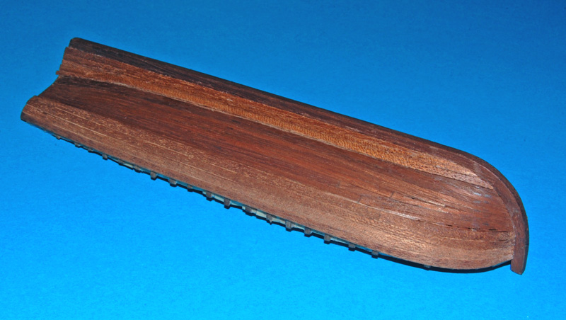 Po jej wklejeniu, i przycięciu listew na rufie, fornirem sapeli okleiłem pawęż.
