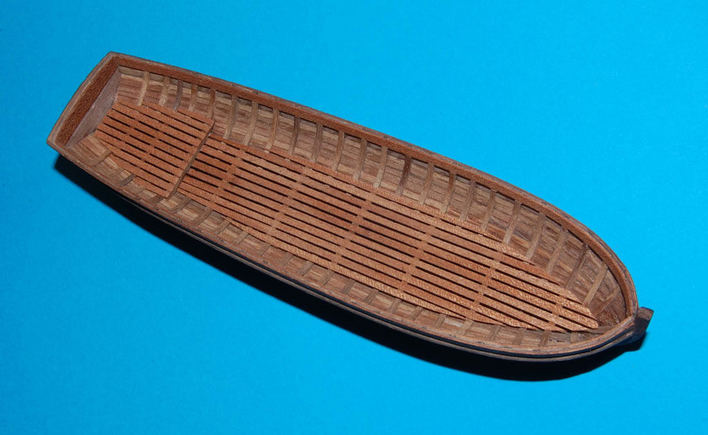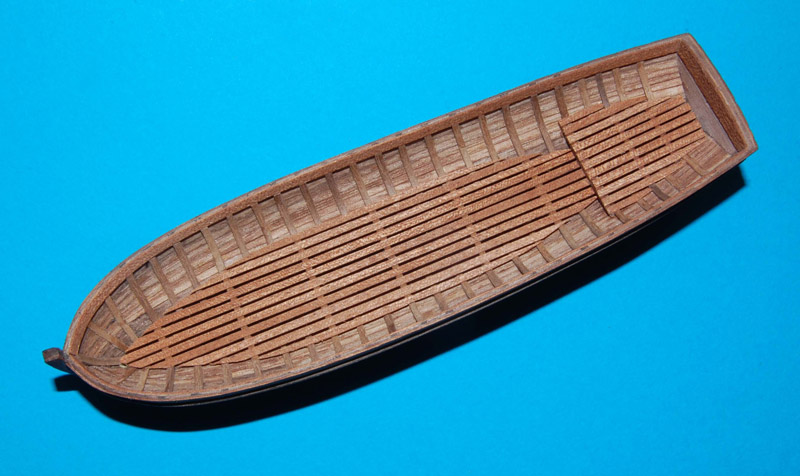 W drugiej szalupie zrobiłem zabudowane ławki (na wzór z planu, tak chciałem zrobić w pierwszej, ale zaniechałem). Zrezygnowałem natomiast z dekoracji w intarsji, ale nie mogłem sobie odmówić wszystkiego .