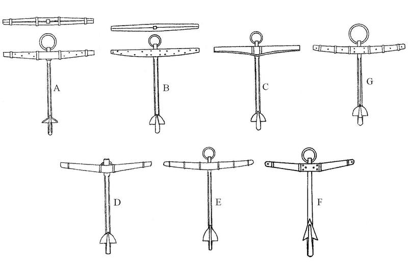 Kształt drewnianych poprzeczek przy typowych kotwicach epoki żagla.