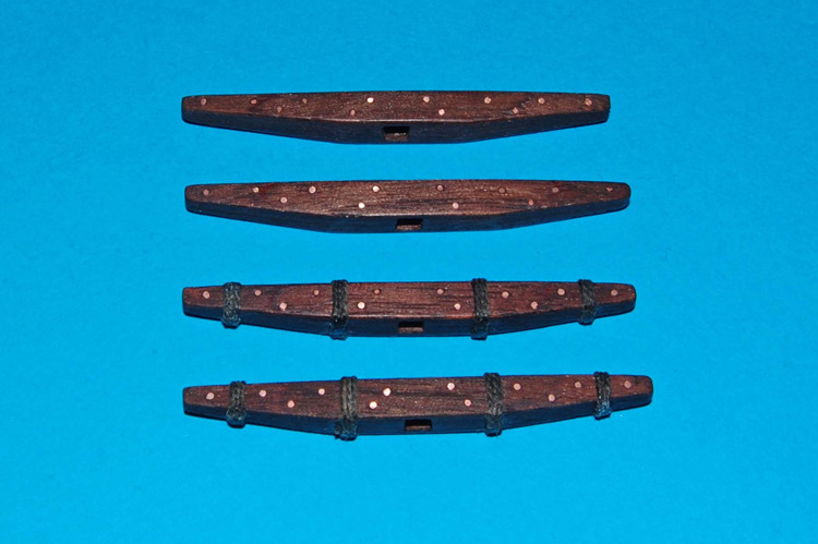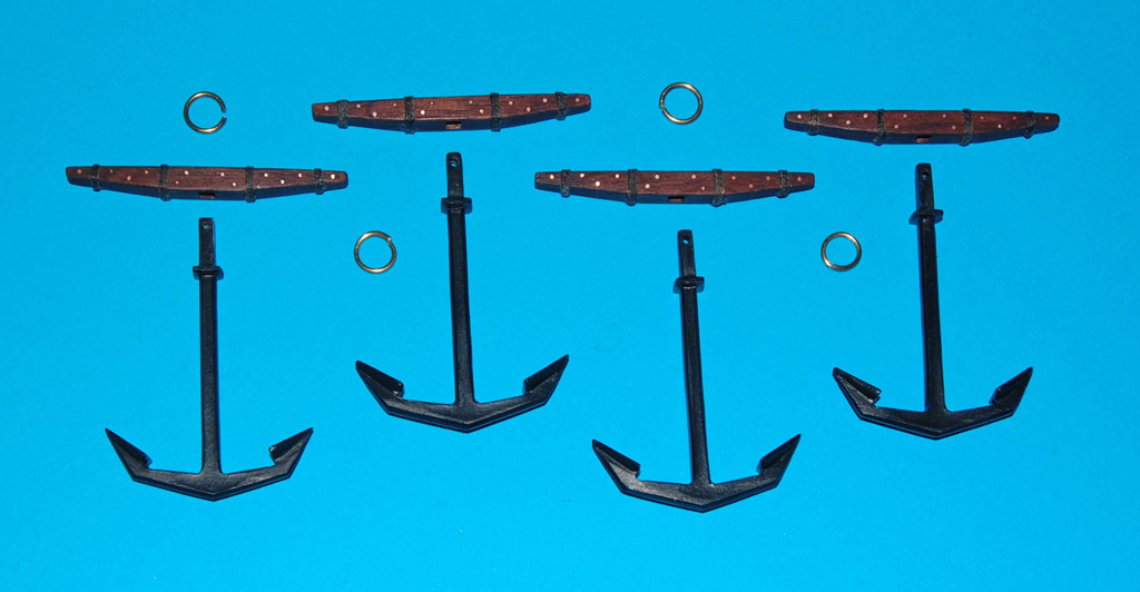 Kolejnym elementem będą kotwice (co prawda mam cztery kotwice zestawowe, ale wykonam je od podstaw ze zmianami i z waloryzacją). Belki poprzeczek wykonam z orzecha amerykańskiego z gwoździowaniem i owijką z linki.