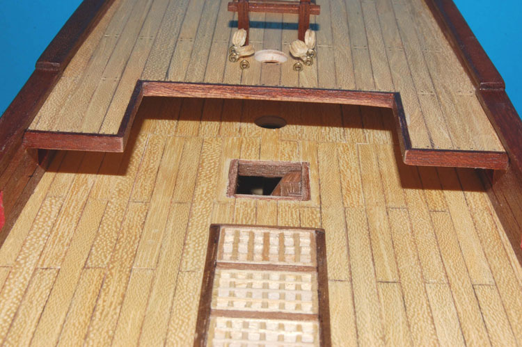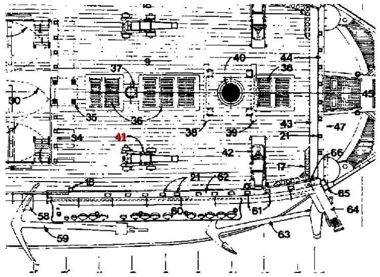 Jak Pan zerknie na następną kartkę książki, z której zaczerpnięto ten rysunek, przekona się Pan, że identyczny problem występował na środkowym pokładzie działowym, tylko w jeszcze większej skali niż przy kabinach nawigatora (5) i sekretarza (6) na pokładzie rufowym.
