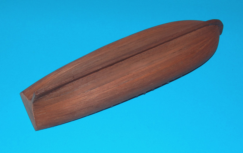 Po jej wklejeniu, i przycięciu listew na rufie, fornirem sapeli okleiłem pawęż.