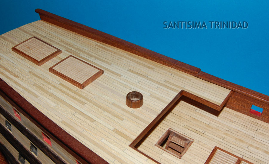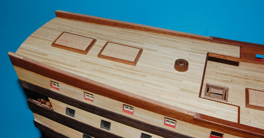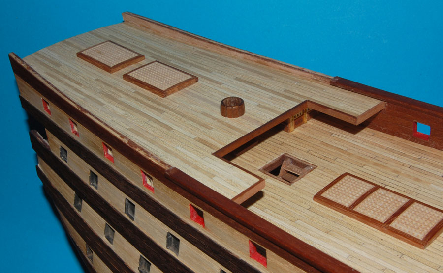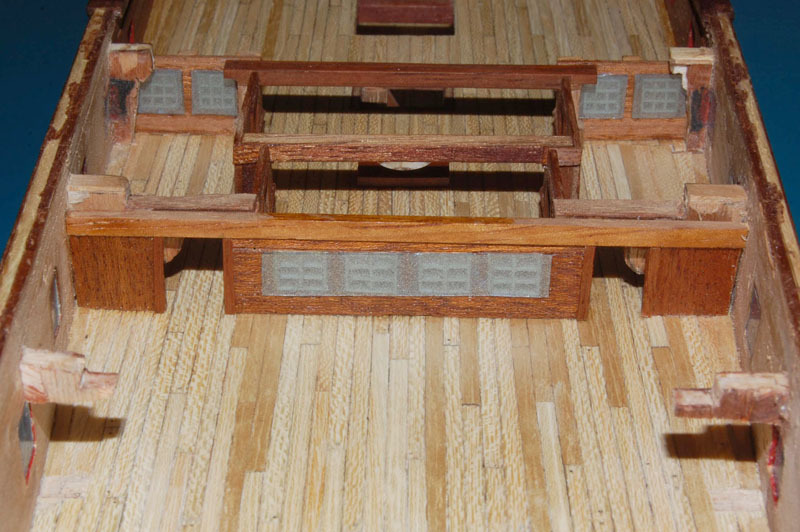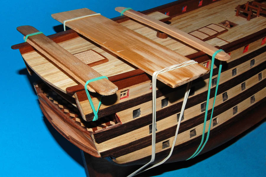oraz opętnik bezanmasztu. Wyciąłem środkową, widoczną w luku na pokładzie rufówki, część pokładnika, pozostawiając część na której spocznie pokład.