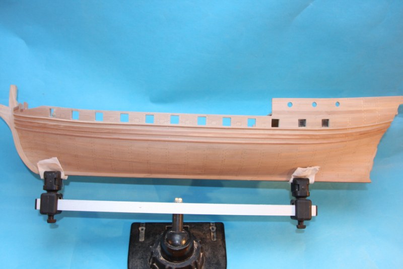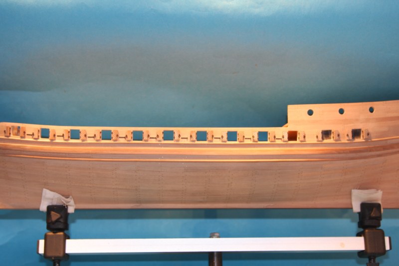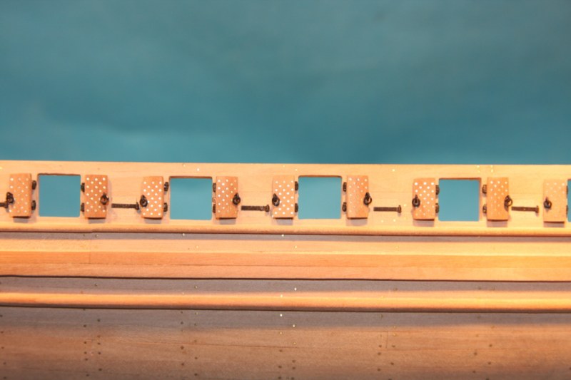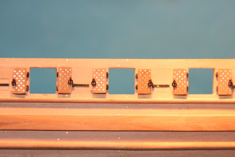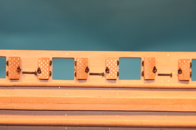 Mimo katastrofalnego braku czasu,jako przerywnik przy metaloplastyce (imitacje zawiasów w liczbie ok.120,a wraz z błędami ok.200) wykonałem listwy na burtach.Na razie jeszcze bez gwoździkowana,ale to w swoim czasie.Pozdrawiam.Marcin