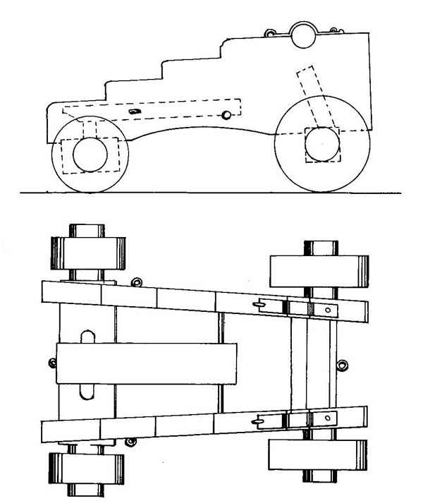 Koła z osiami są niestety podniesione ponieważ lufa patrzyłaby w dół.