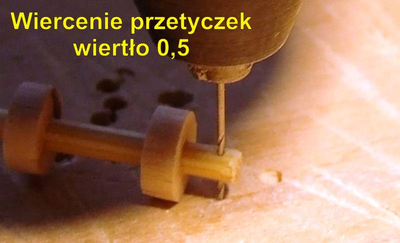 Osie na razie są z patyków bambusowych ale będą wymienione na patyczki brzozowe.