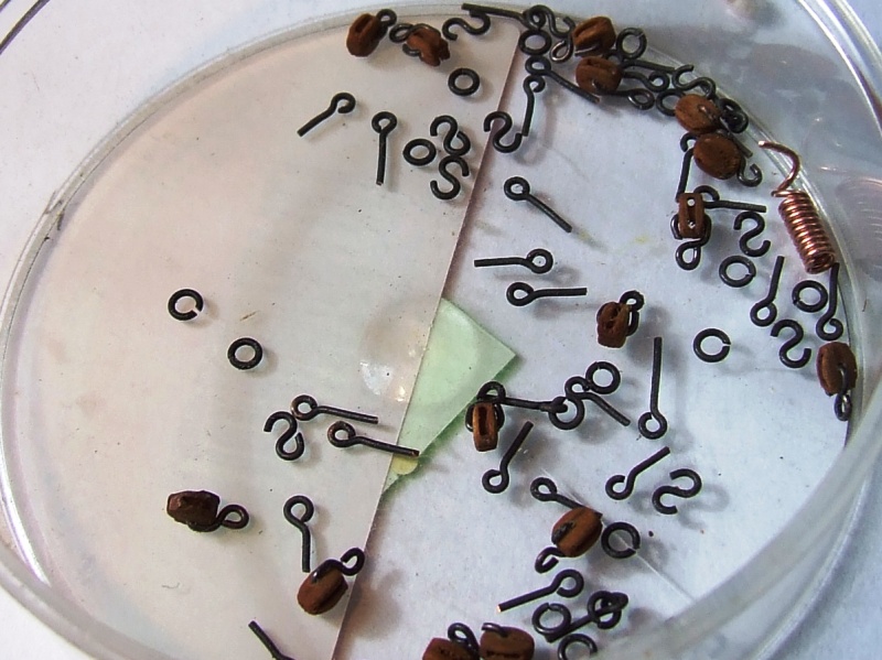 Przewiercam otwór 0,3 mm przez środek bloczka i zakładam uchwyt.