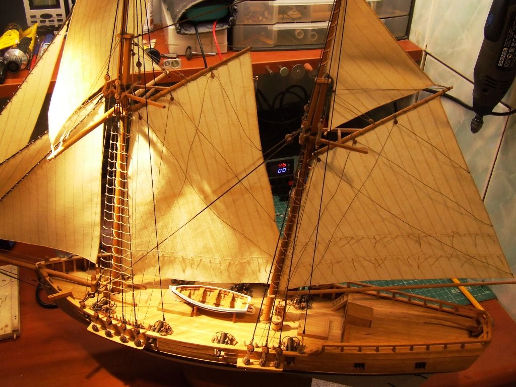 Wanty i wyblinki super.Talrepy rzeczywiście powinny być mniejsze trochę powyżej połowy średnicy masztu przy podstawie.Liny jufersa jasne ponieważ zmieniano naprężenie want w trakcie eksploatacji.Te linki należą do olinowania ruchomego.Nie powinny być czarne.R