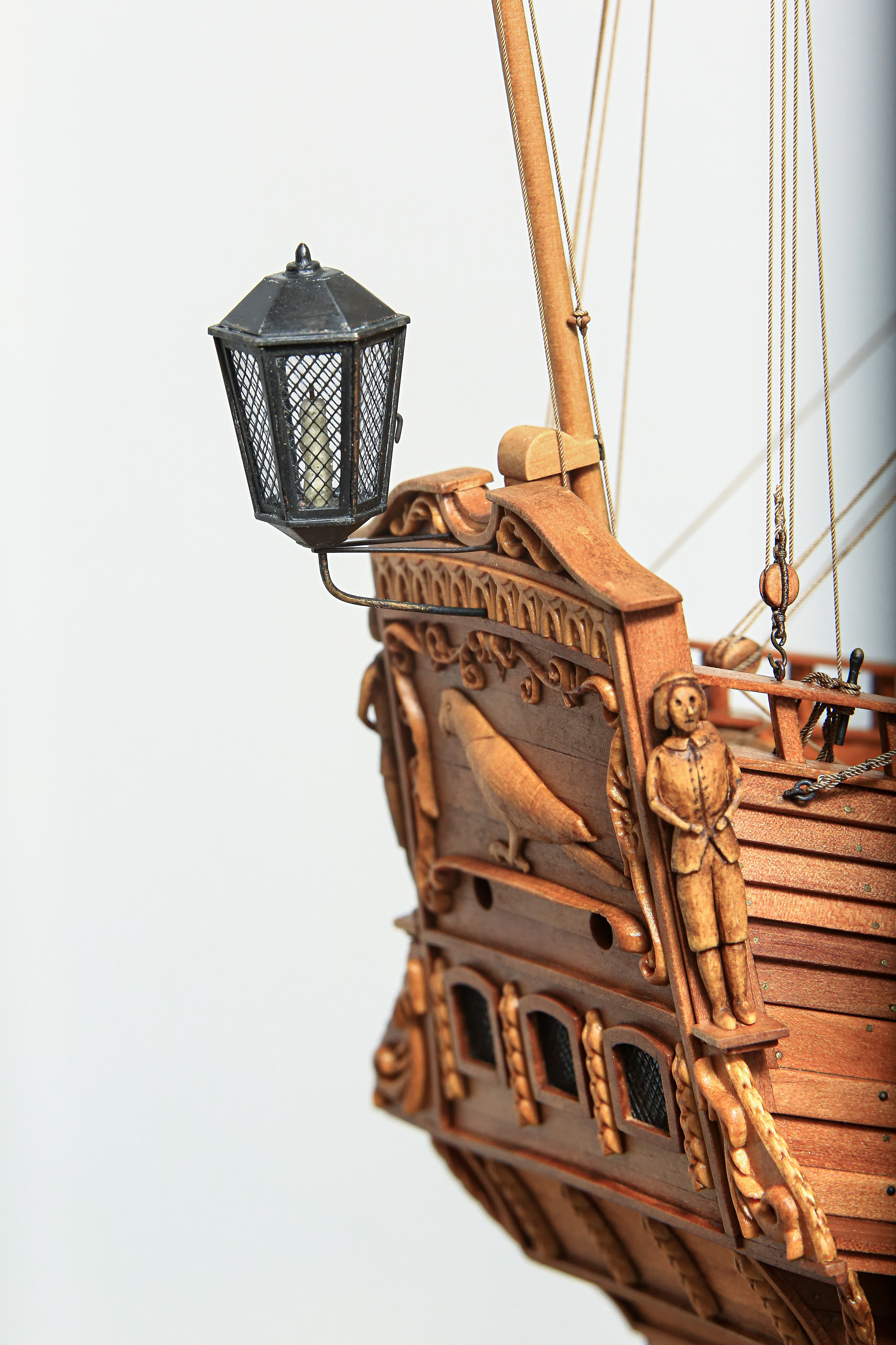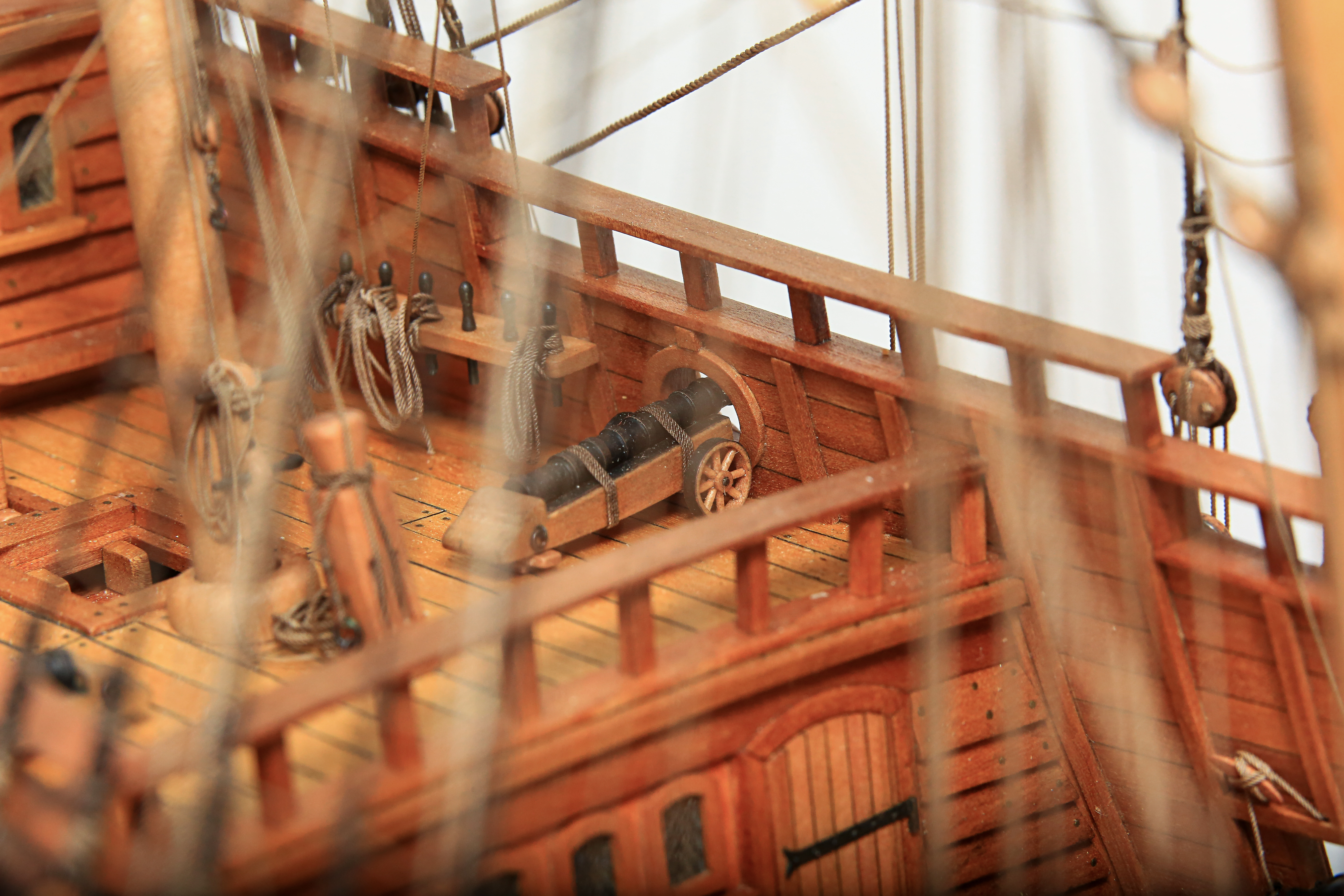 Głowy żołnierzy, czy kim oni niby mieli tam być... :lol: zostały wyrzeźbione z laotańskiego bukszpanu... zresztą tak jak i galion oraz dwie figurki na rufie.