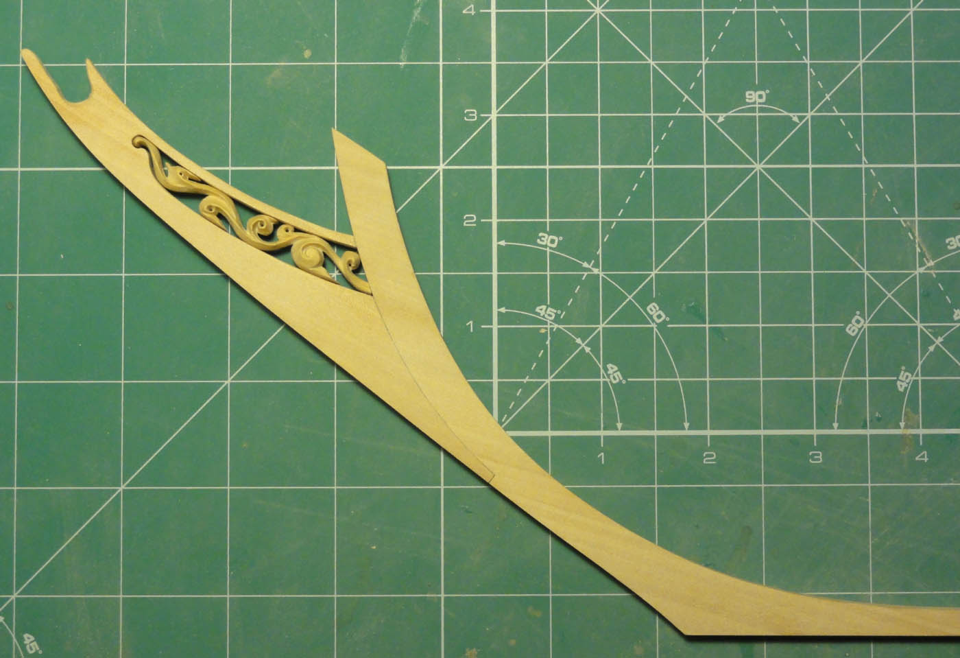 Stewa dziobowa i kil co się nie zmieścił na fotce ;) ... nie pokazuje jak zrobiłem bo co tu pokazywać... pół dnia wyrzynania, szlifowania, pasowania, szlifowania, pasowania i szlifowania i tak do skutku... jak już się odkopiemy ze sterty wiórów i pyły to wyjdzie coś takiego...