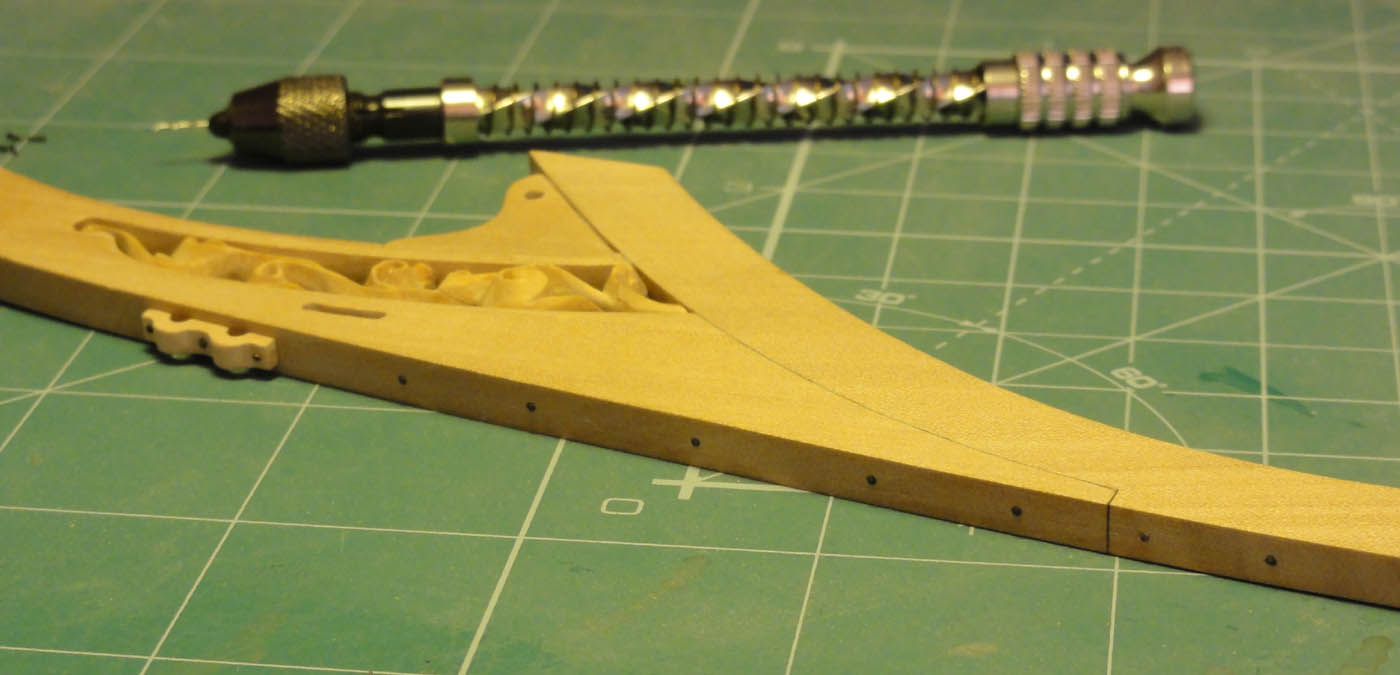... wciąż jednak nie udało mi się znaleźć jak był gwoździowany kil po długości :(w jakich odstępach były gwoździe i czy były pojedynczym rzędzie , czy podwójnym?? Na łączeni widać, że gwoździe były w dwóch rzędach... a co z resztą stępki?? zastanawiam się też czy oby na pewno na stewie dziobowej gwoździe były jednorzędowe... kiedyś, gdzieś na jakiejś fotce widziałem, że stewa ma jeden rząd gwoździ...