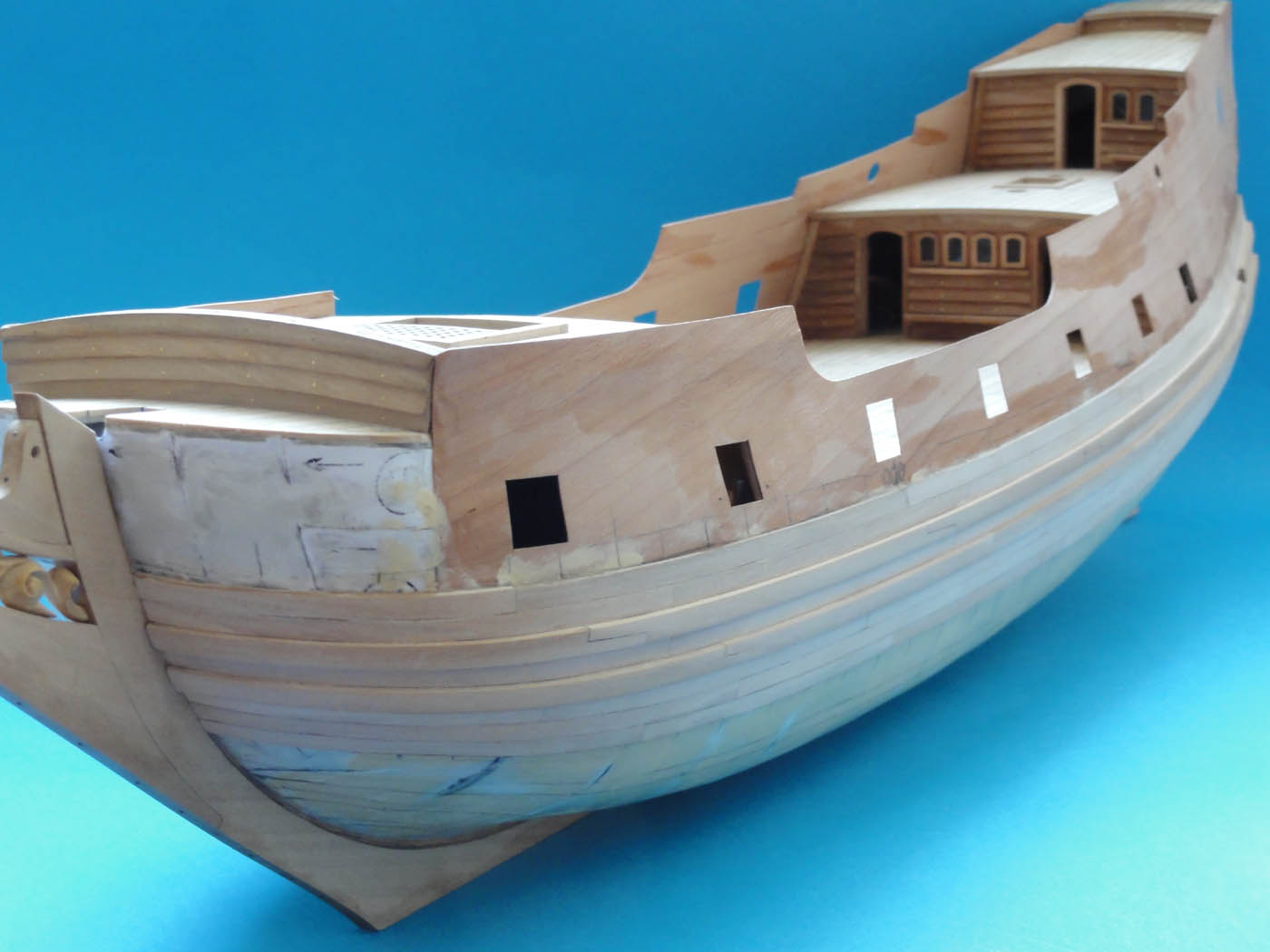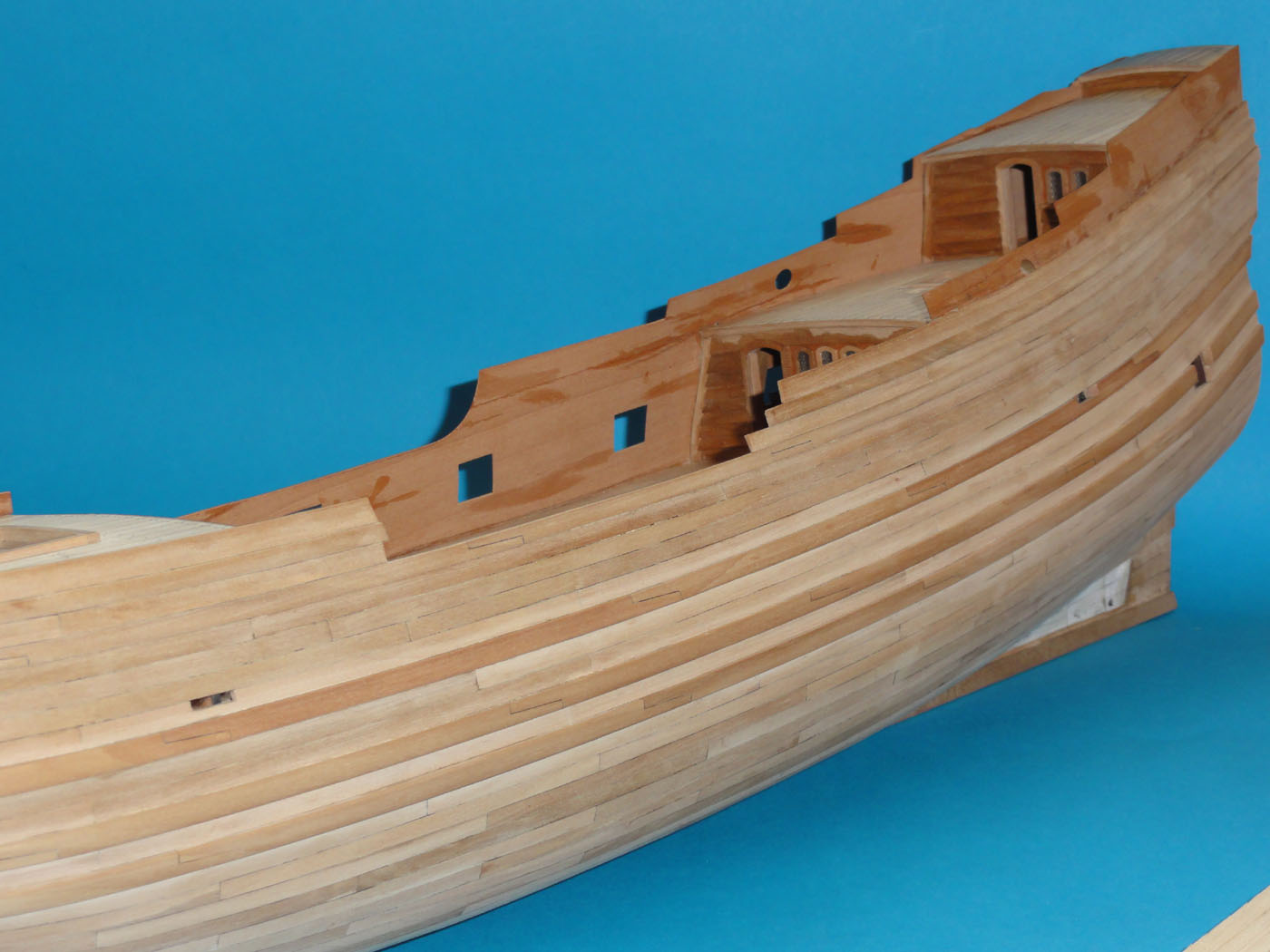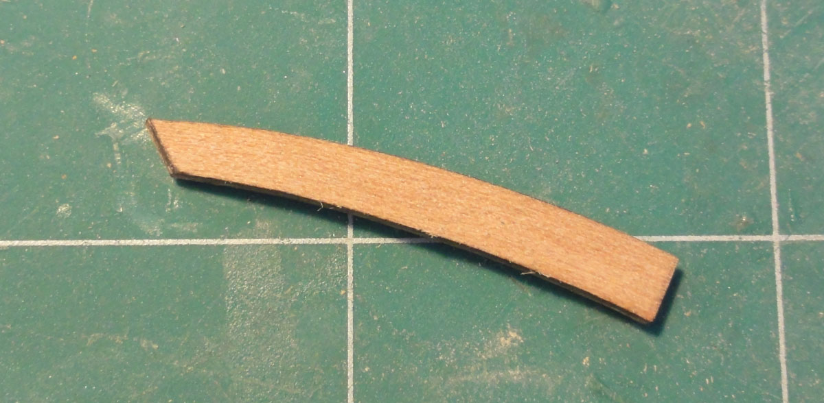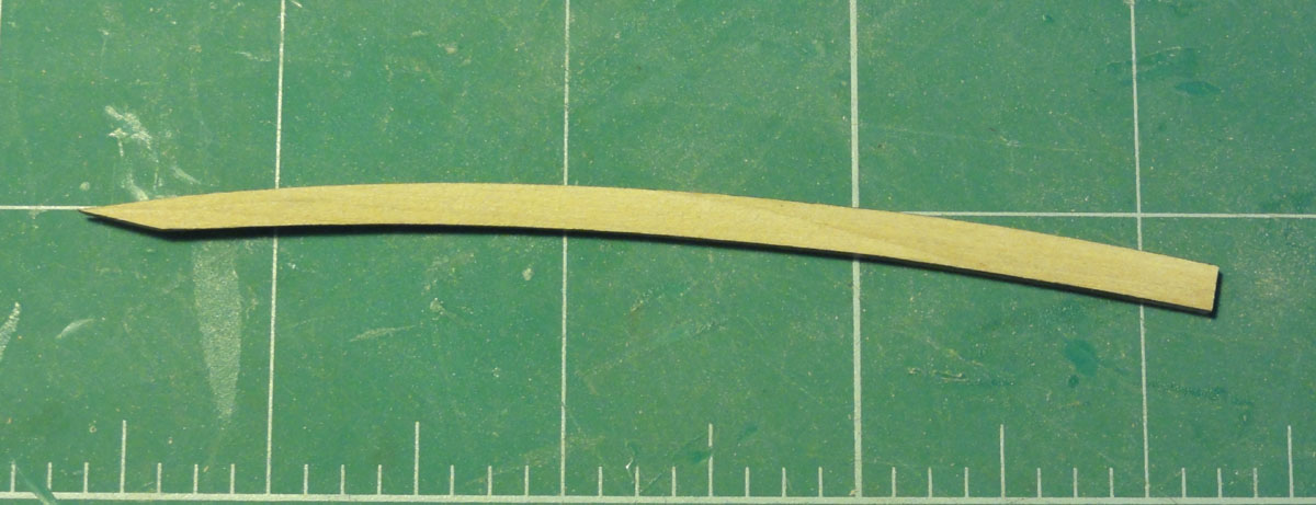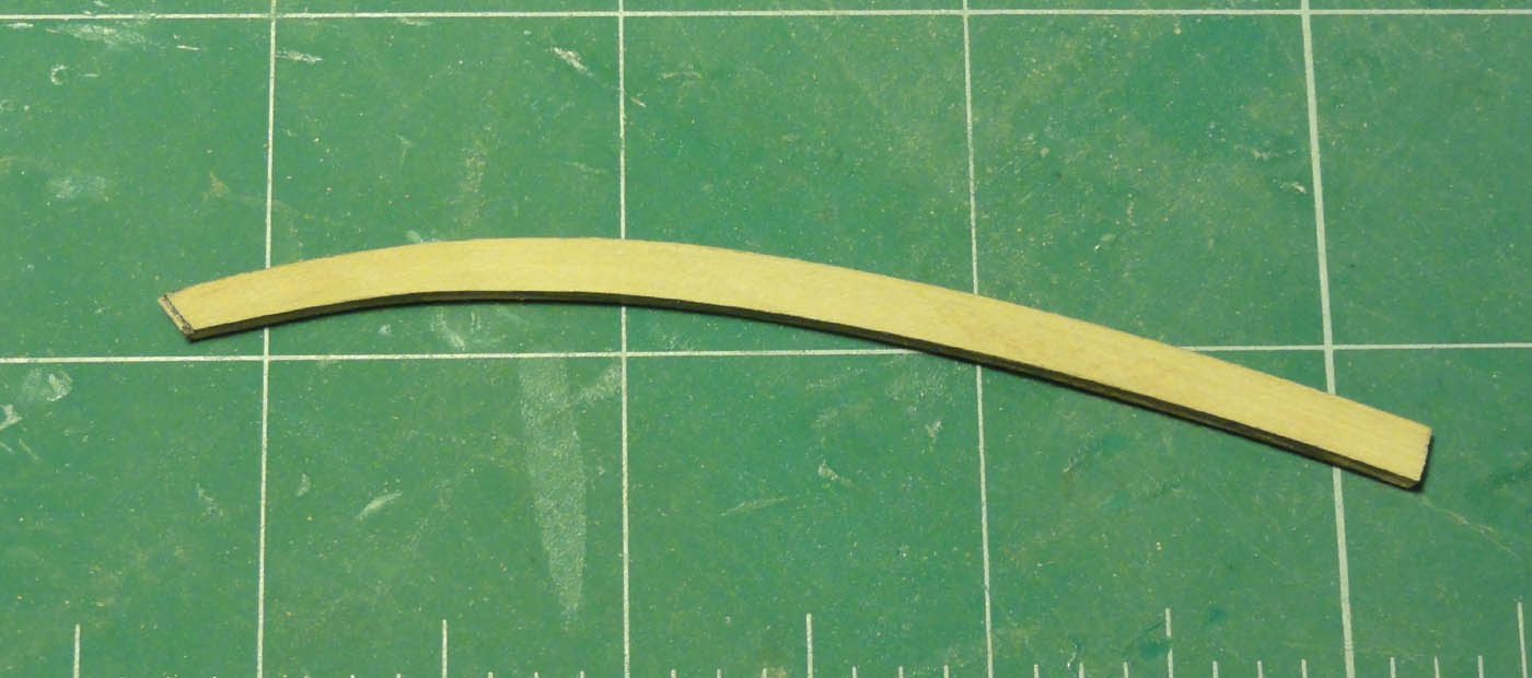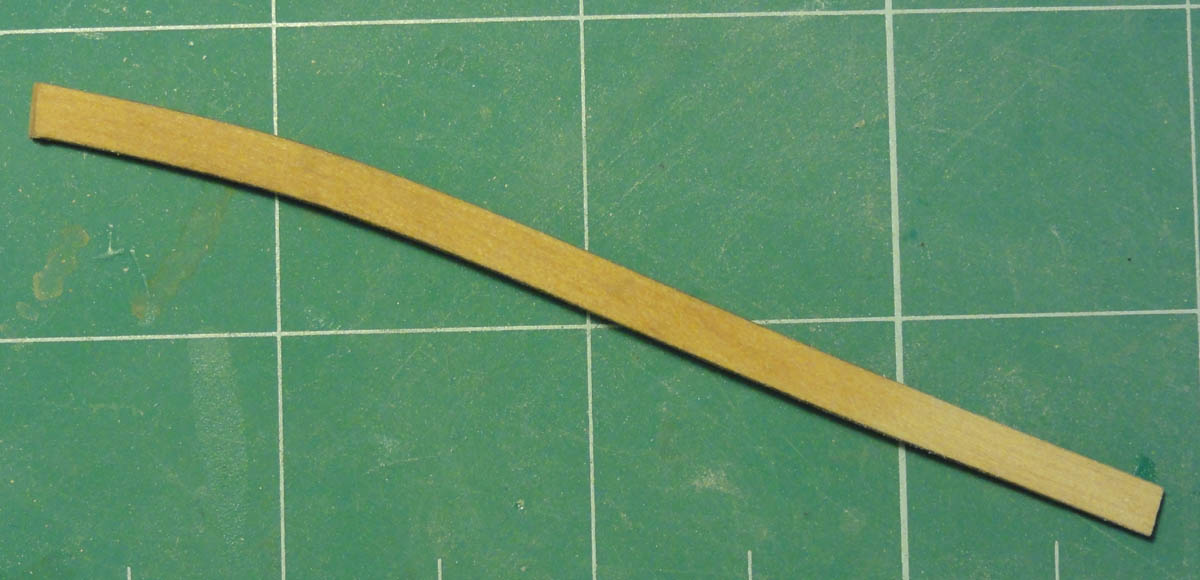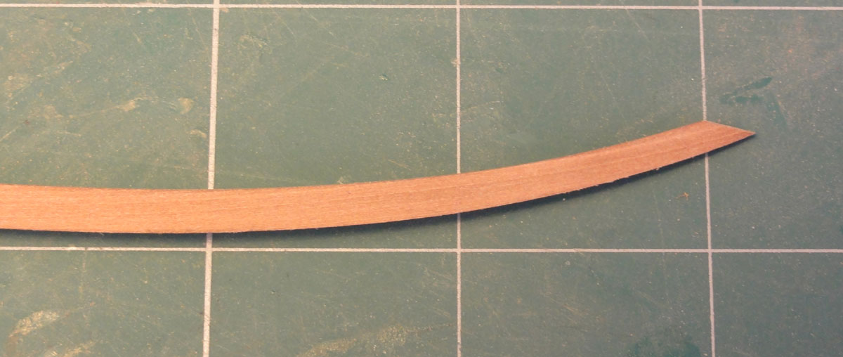 Najwięcej problemów sprawiło wygięcie do kształtu odbojnic na dziobie... listwa 3x5mm już nie jest taka skora do współpracy...