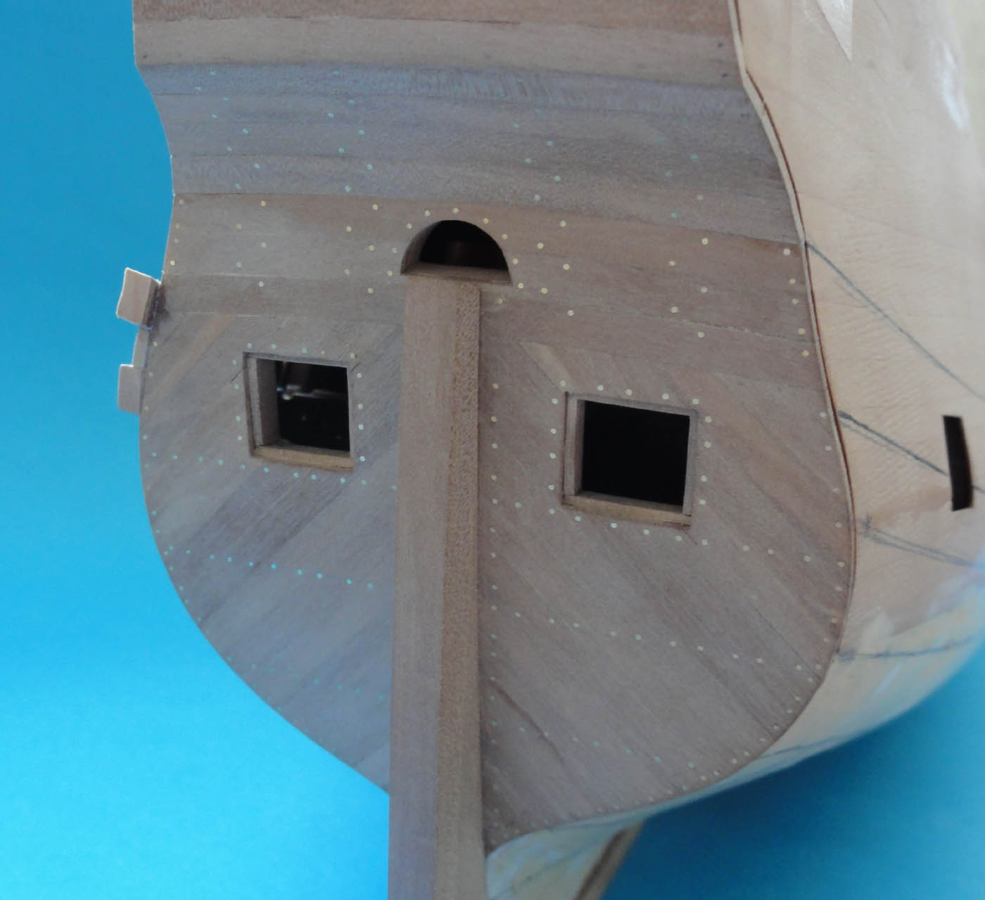... rozwiązanie to eliminuje klejenie "na styk" do stewy... i nie powoduje odklejania się listwy w tym miejscu przy doginaniu jej do kształtu kadłuba... jest zaklinowana
