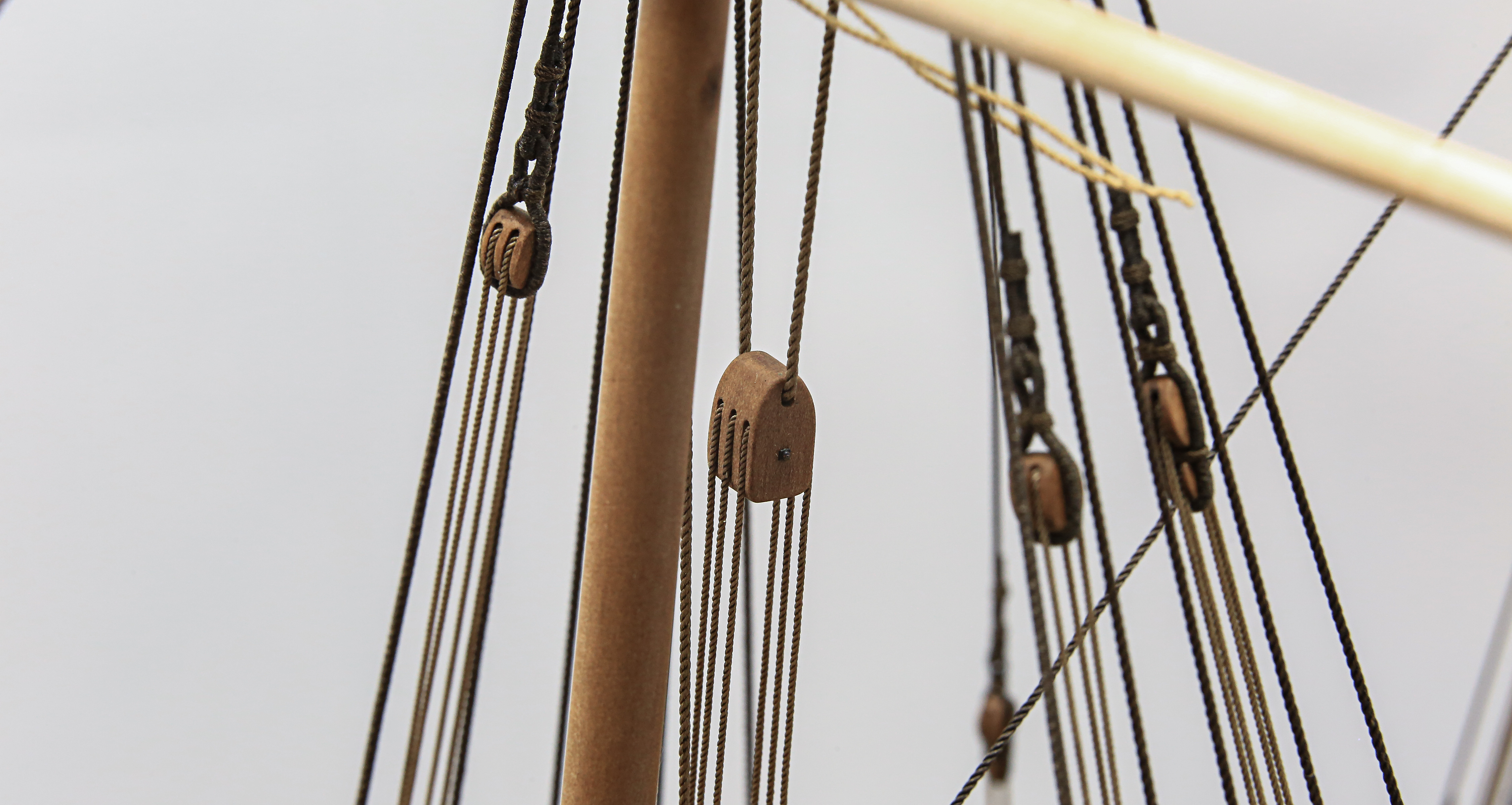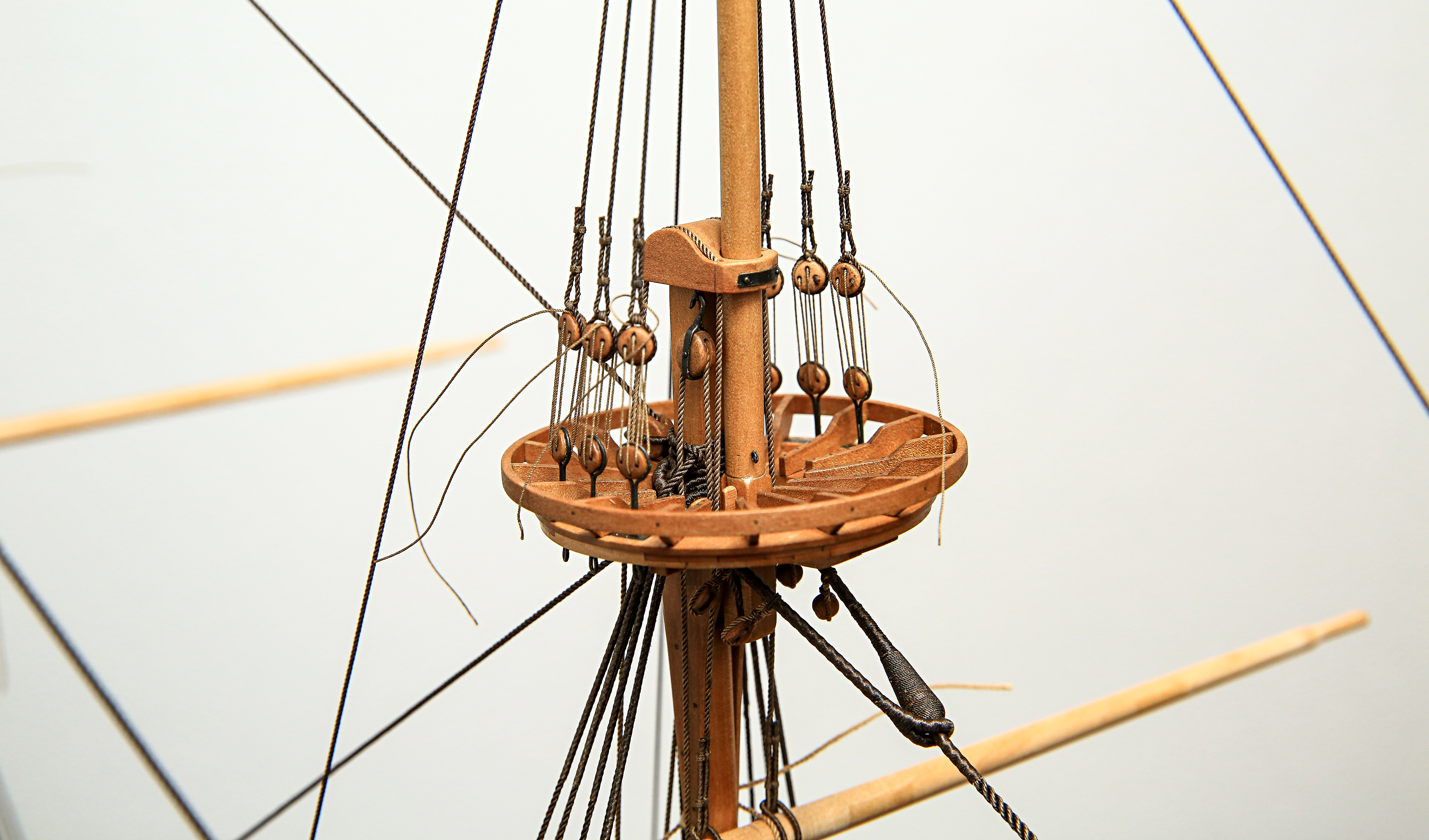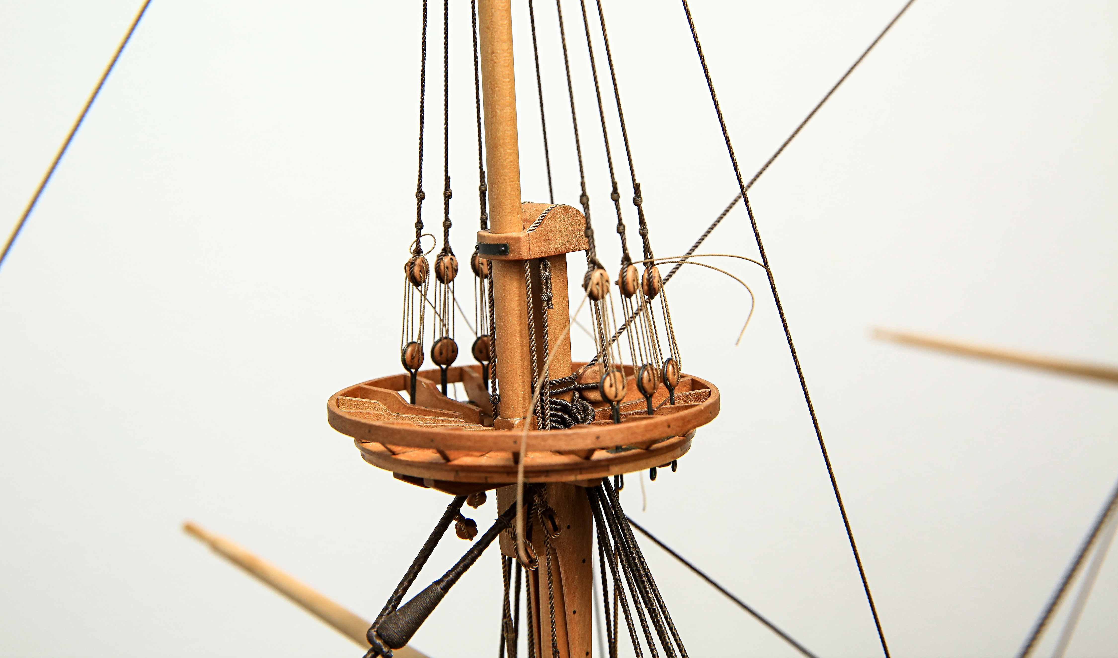 Dla zainteresowanych, ta ciekawa cześć takielunku służyła, aby żagiel nie podchodził pod mars (bocianie gniazdo).