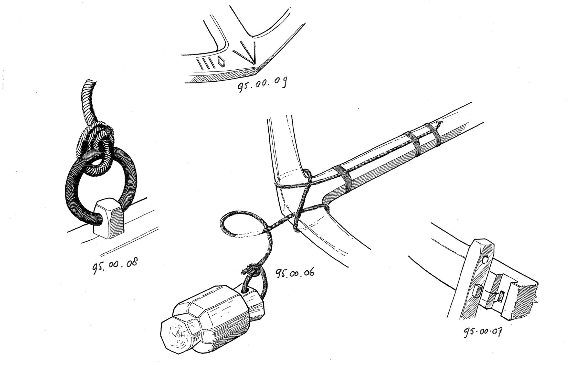 Wiszą na samym węzełku... bez kleju... zresztą jak wszystkie liny na naglach, knagach, itp... sam nie wiem po co :lol: chyba gdybym chciał wymienić jakąś linkę bez demolki... co i tak pewnie nigdy się nie wydarzy :lol: