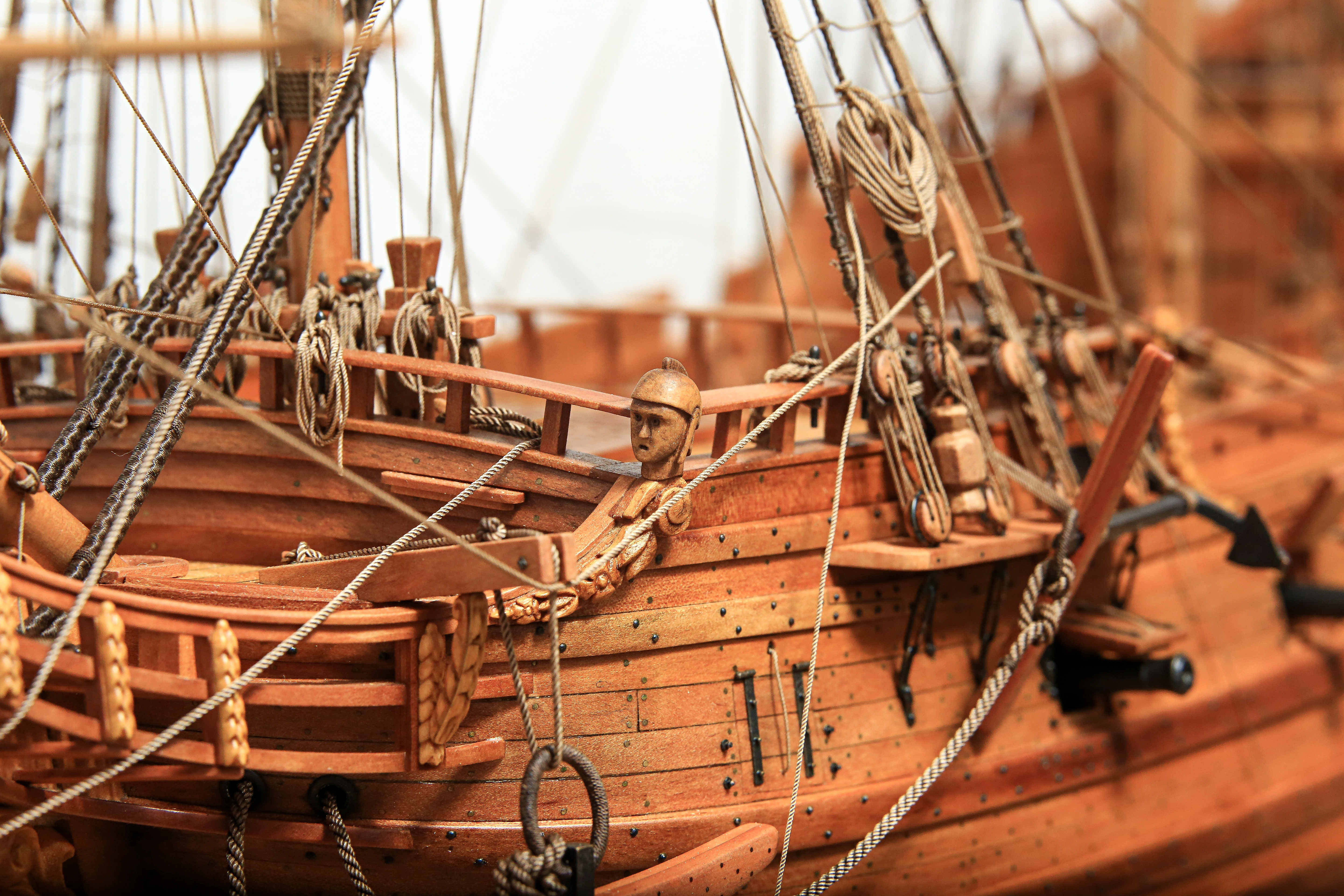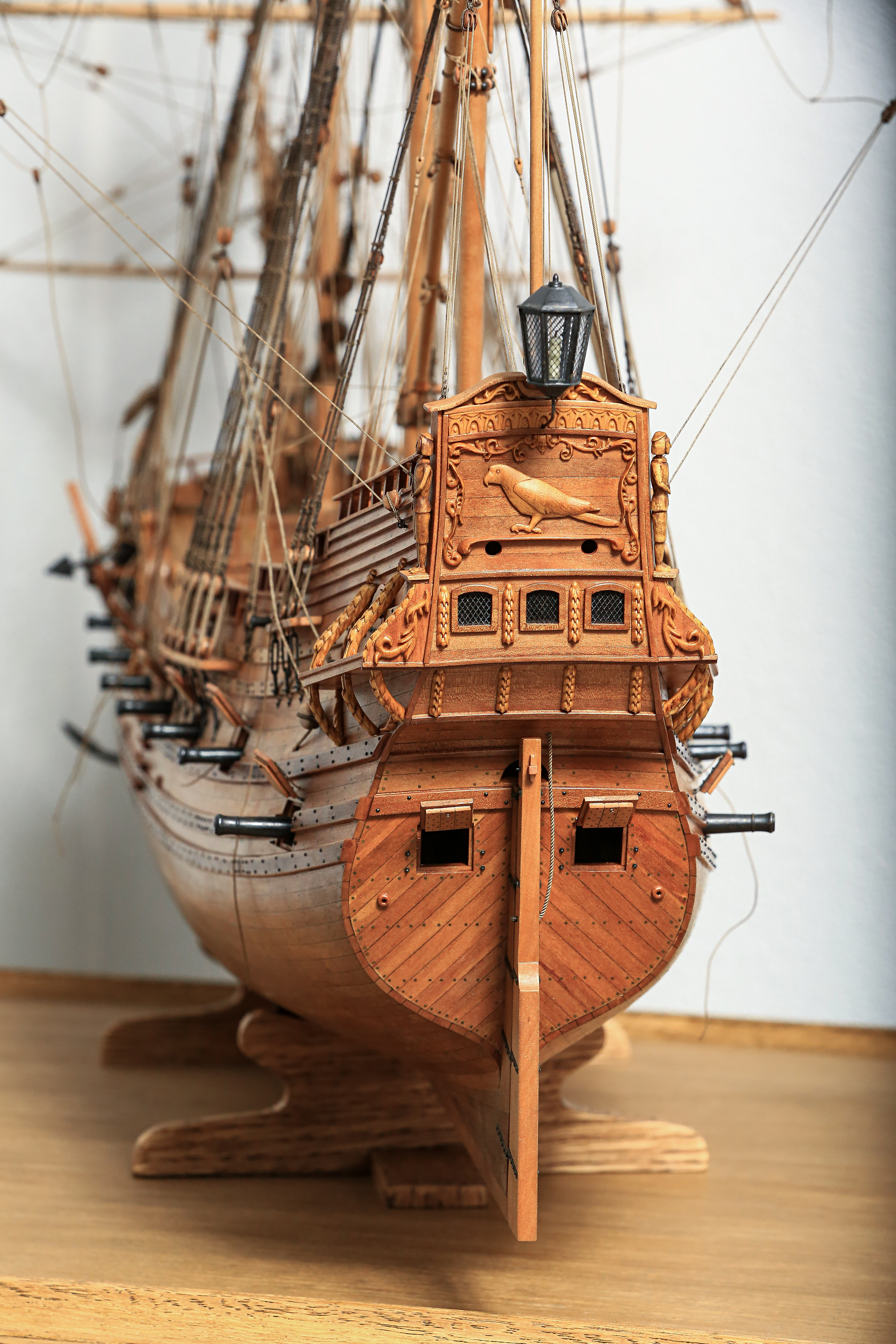 Głowy żołnierzy, czy kim oni niby mieli tam być... :lol: zostały wyrzeźbione z laotańskiego bukszpanu... zresztą tak jak i galion oraz dwie figurki na rufie.