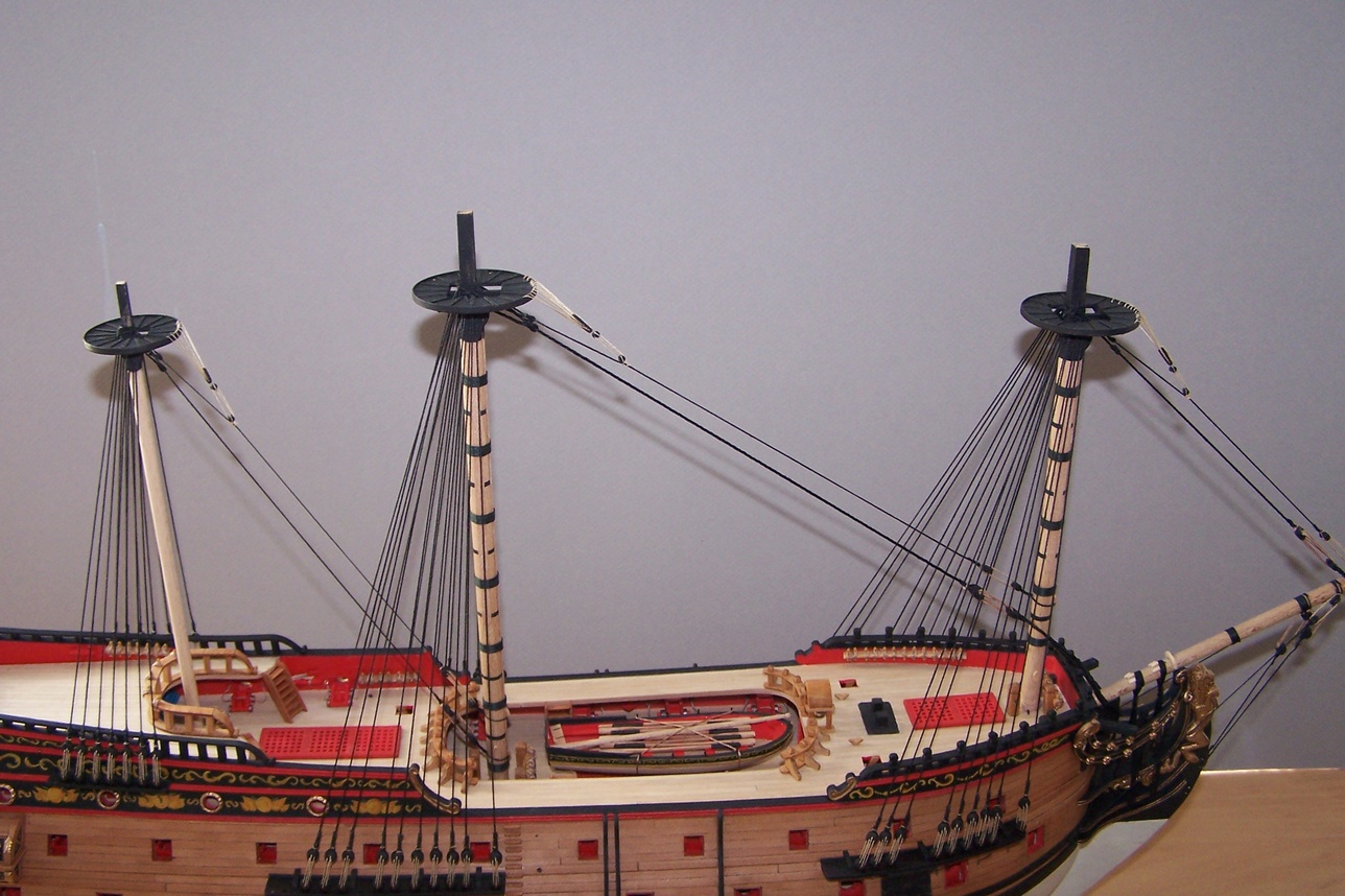 Karol mi chodziło przede wszystkim o pokazanie sposobu zakonczenia sztagu i przyjmuję ze Mirek wie ża takie zblocze powinno być w jego modelu a nie jufers choć po roku 1700 można podejrzewać że rozwiązania brytyjskie i kontynentalne były podobne ale oczywiscie nie jestem przekonany gdyż jeszcze w roku 1690 na kontynencie stosowano jufersy więc w roku 1702 w którym był budowany ten galeon można by je zastosować i nie wiadomo czy byłby to błąd te lata przejsciowe są trudne do określenia i jeżeli sie nie ma dobrych planów to na coś się trzeba zdecydować .