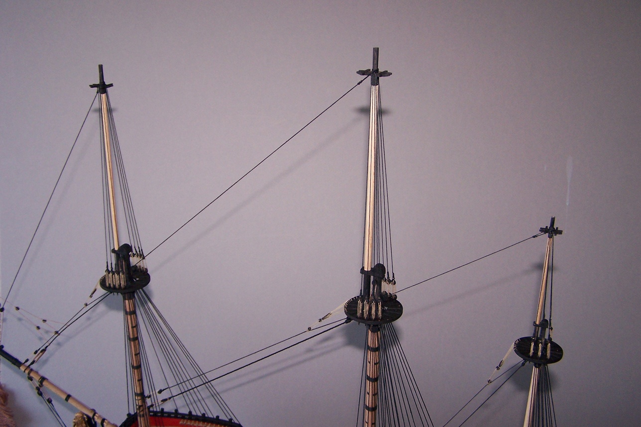Coraz ładniej sie prezentuje ale widzę ze zamontowałes reje więc co modelik bedzie bez żagli czy planujesz montaż na podwieszonej reji ? co szczerze odradzam