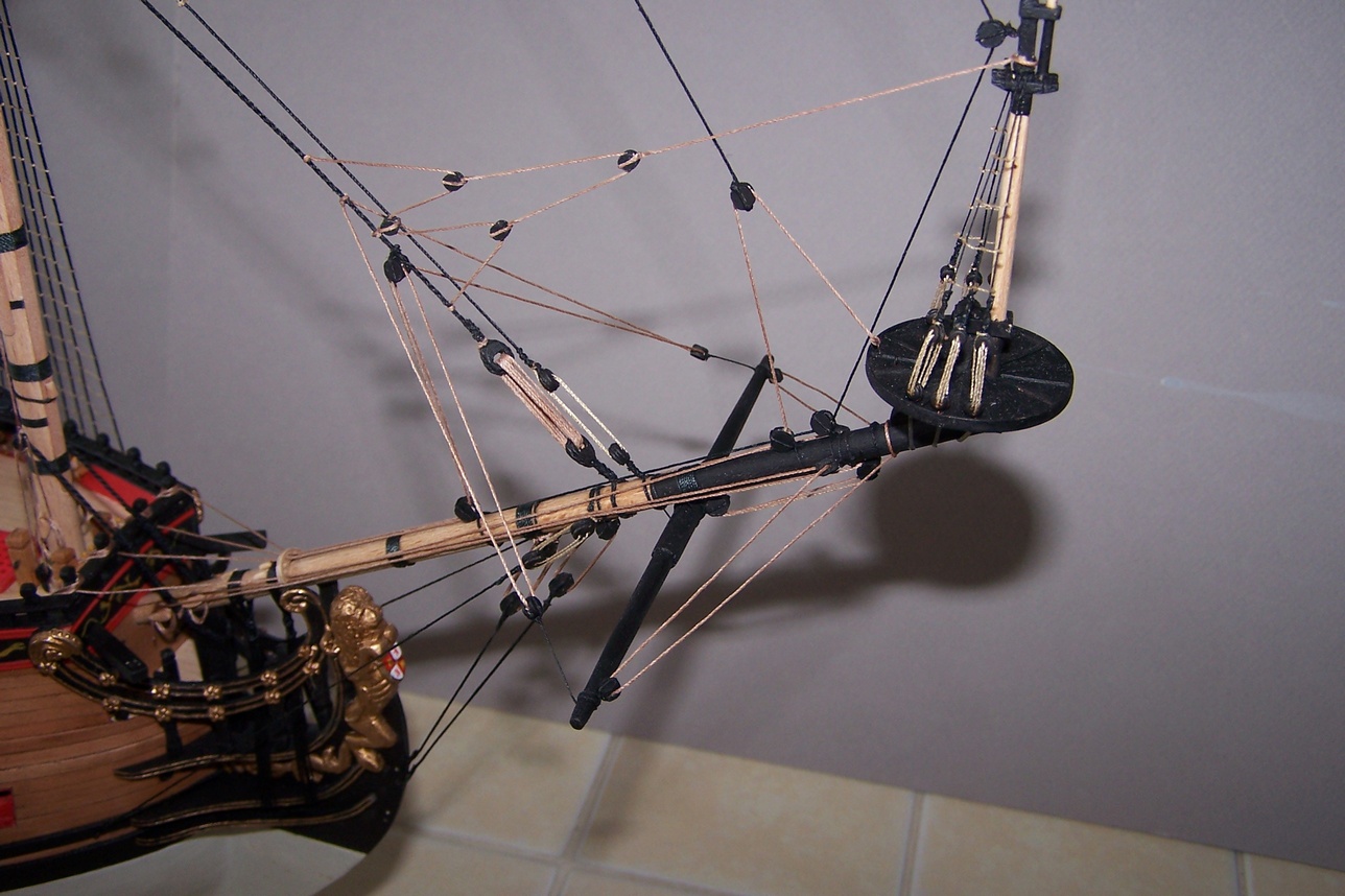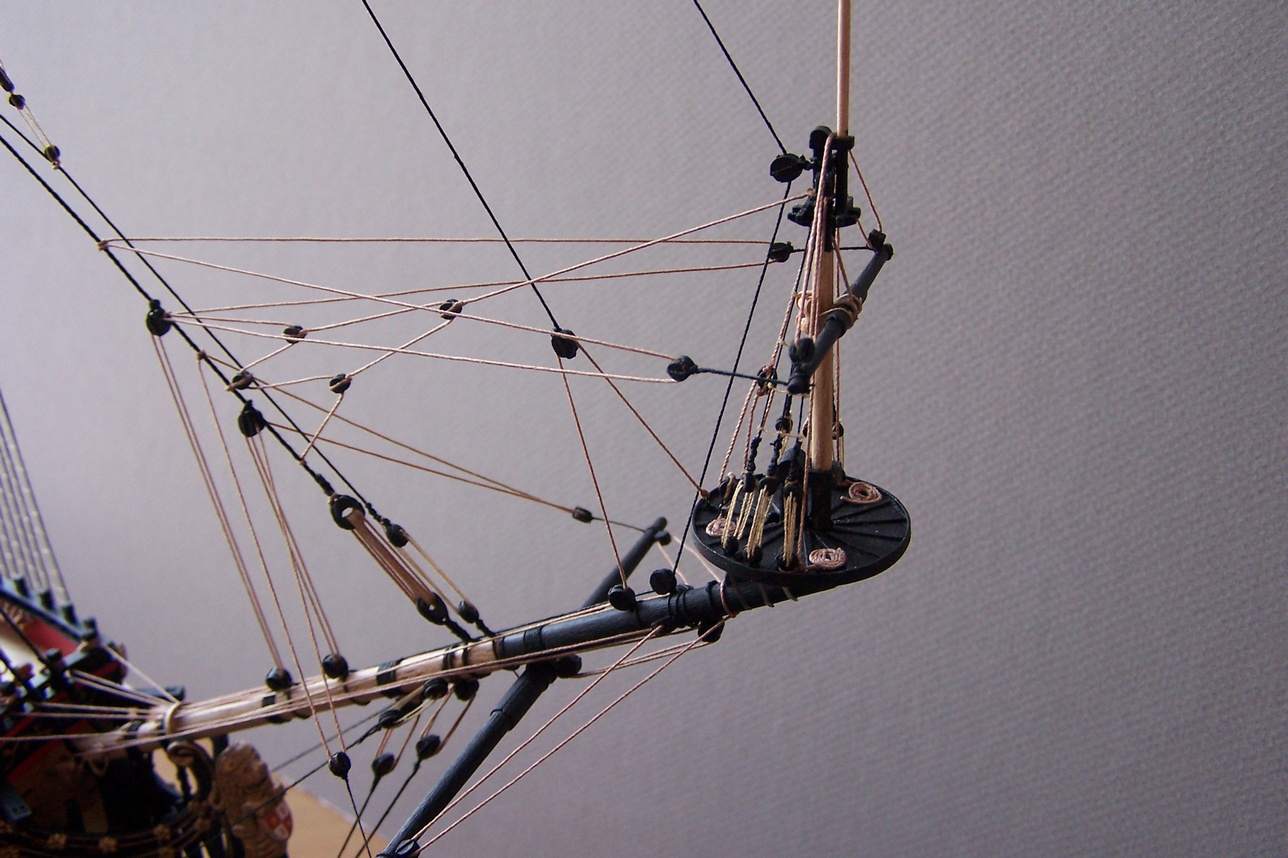 Coraz ładniej sie prezentuje ale widzę ze zamontowałes reje więc co modelik bedzie bez żagli czy planujesz montaż na podwieszonej reji ? co szczerze odradzam