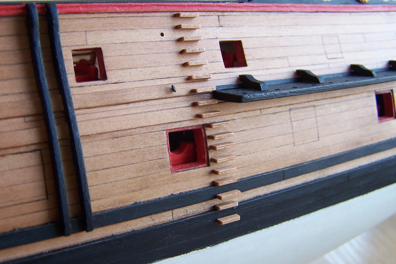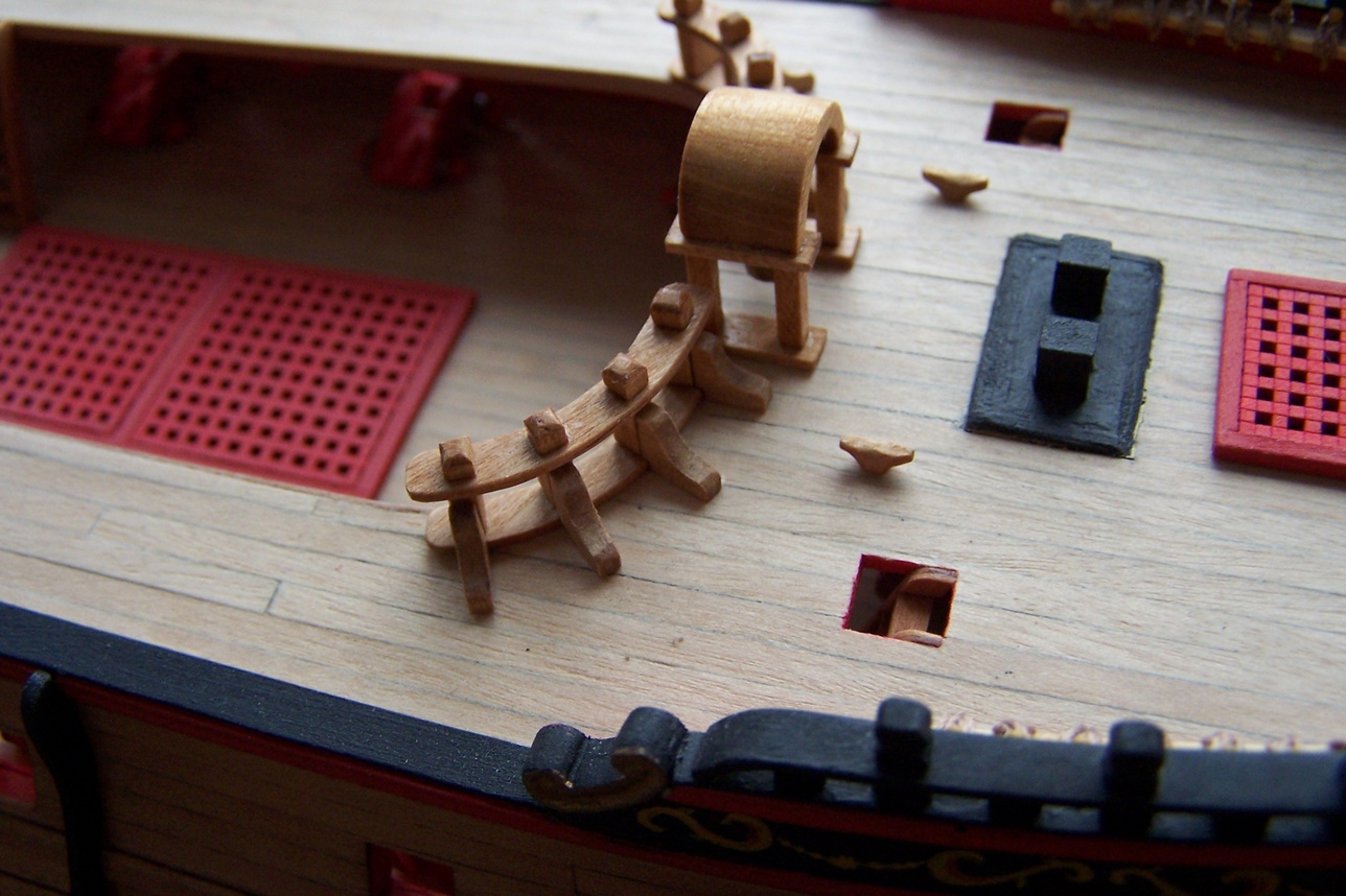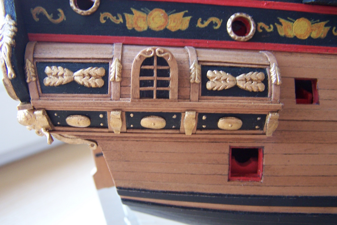 Cześć.Przybyło trochę drobiazgów.Skończyłem zdobienia na rufie.Zamocowałem ostatnie lawety jeszcze bez armat, a na koniec schodki na burtach.Jednym słowem nuda