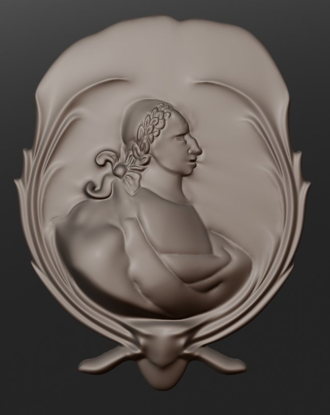 Jeśli chodzi o wierność- nałożyłem z 50% przezroczystości fotkę na "mój" medalion. Są przekłamania (brak dekoracji nad ramieniem- nie wiem czy to jakiś łańcuch czy co innego) ale główne proporcje chyba są ok. Boję się trochę że te wszystkie drobne detale tak naprawdę znikną w druku, bo ile będzie miał wysokości cały medalion ? Mniej niż centymetr ?