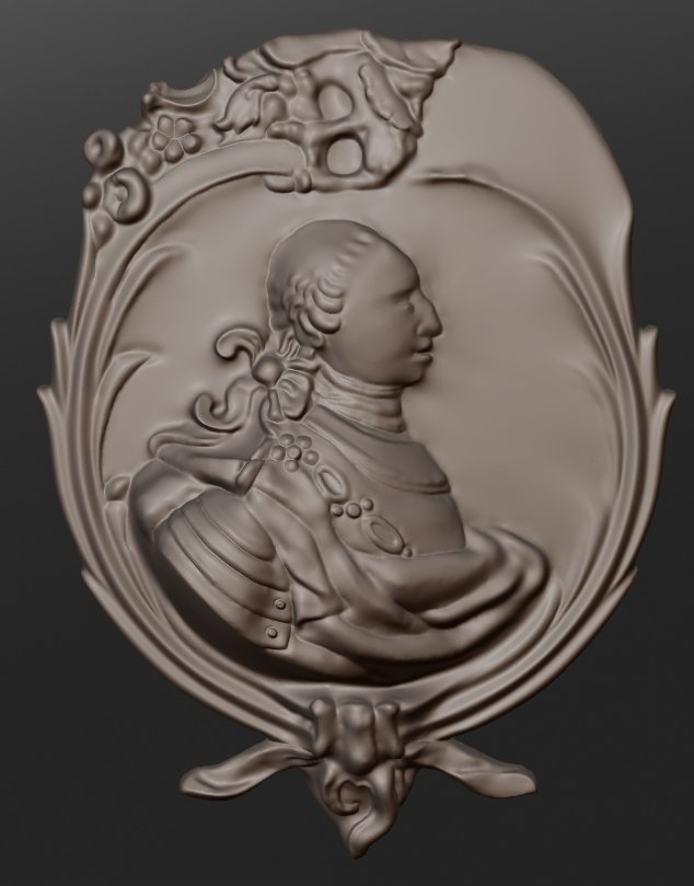 Popiersie poprawione zgodnie z nową fotką. Trzeba je jeszcze "wylizać tu" i tam ale główne elementy RACZEJ zostaną jak są. Znowu wraca kwestia zwieńczenia.