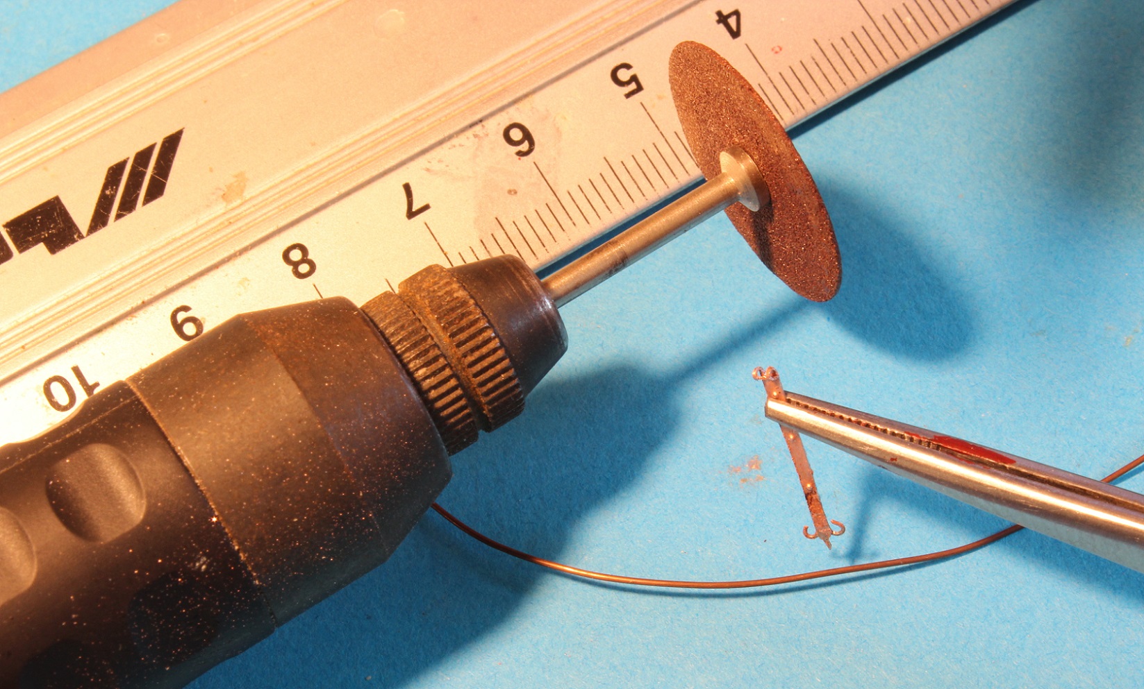 1) prawa i lewa strona odkuwki zawiasu, płaskownik zawiasu odkuwam z drutu miedzianego 0,7mm