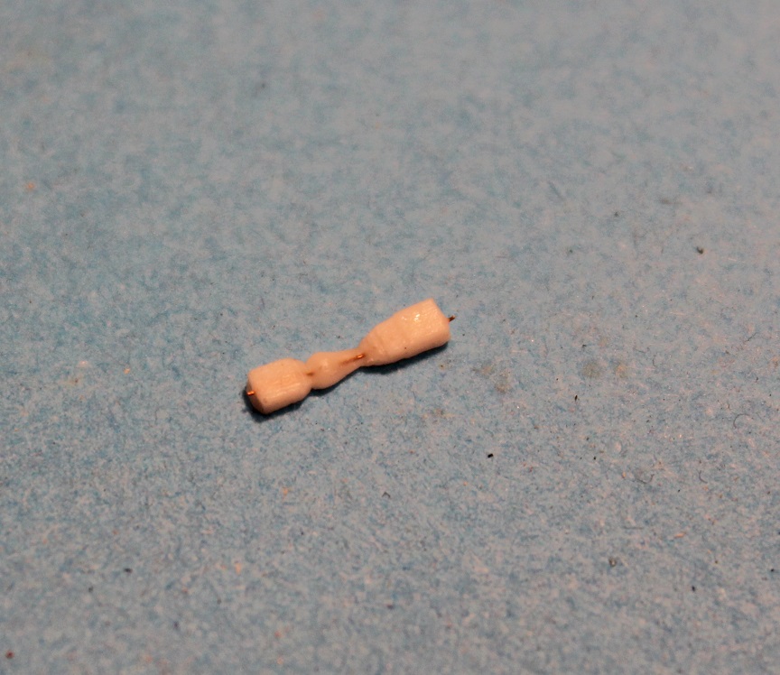 I mam zmianę technologii. Odlewy tralek są zbyt delikatne. Musiałem kilka odlewów wywalić do kosza- pękały przy usuwaniu nadlewów. W odlew musiałem wstawić zbrojenie w postaci drucika miedzianego z ekrany przewodu antenowego- fotka poniżej
