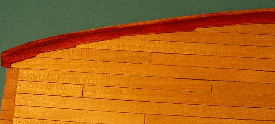 - pokładniki, których ilość dałem zgodnie z ilością wręg, muszę przy wykonywaniu wyższych pokładów zagęścić- zauważyłem, że lepiej się mi dociska właściwe dechy pokładu w części rufowej i dziobowej- mama tam gęściej ułożone pokładniki