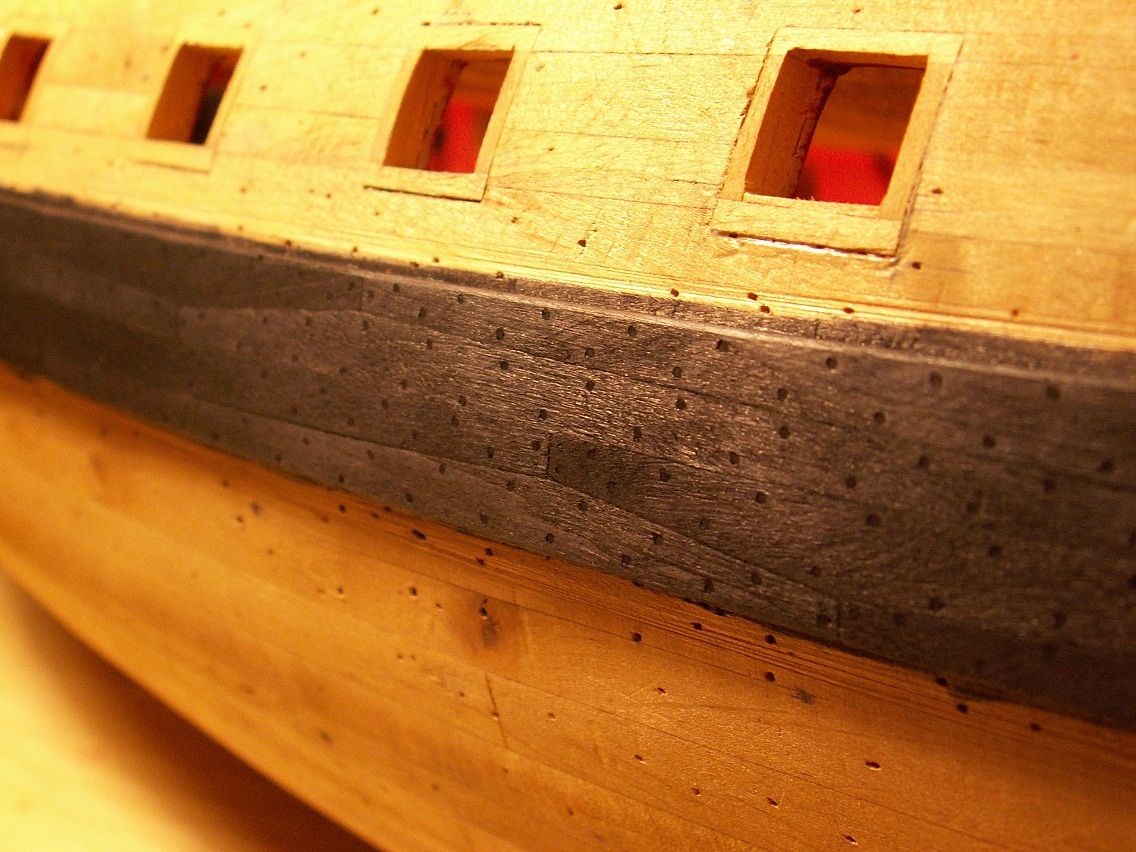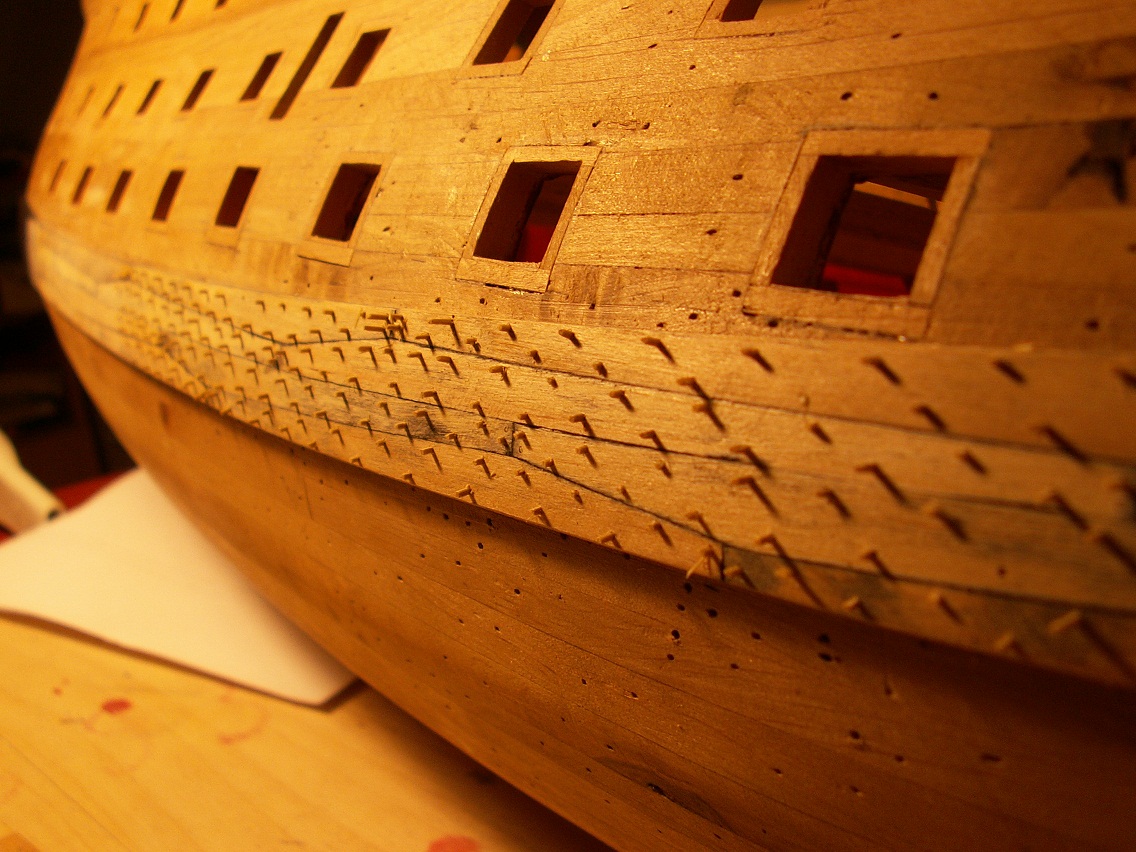 Adam okręty wojenne jak i inne z epoki remontowano więc kołki i mocowania mogły się rozbiegać w trakcie wymiany częściowego poszycia lub jednostkowych desek. Także jak się gdzieś walniesz z kołkami to w tamtym miejscy dodaj kilka i powiedz, że to łata po kuli armatniej