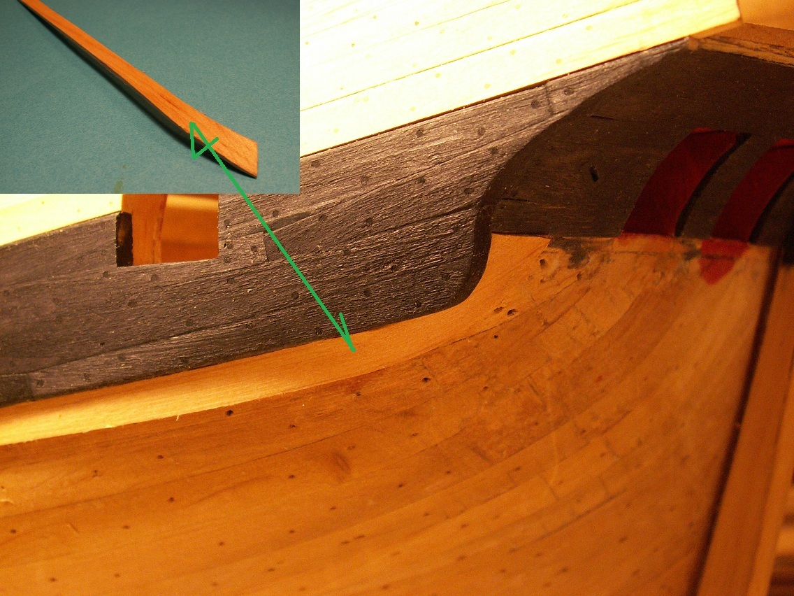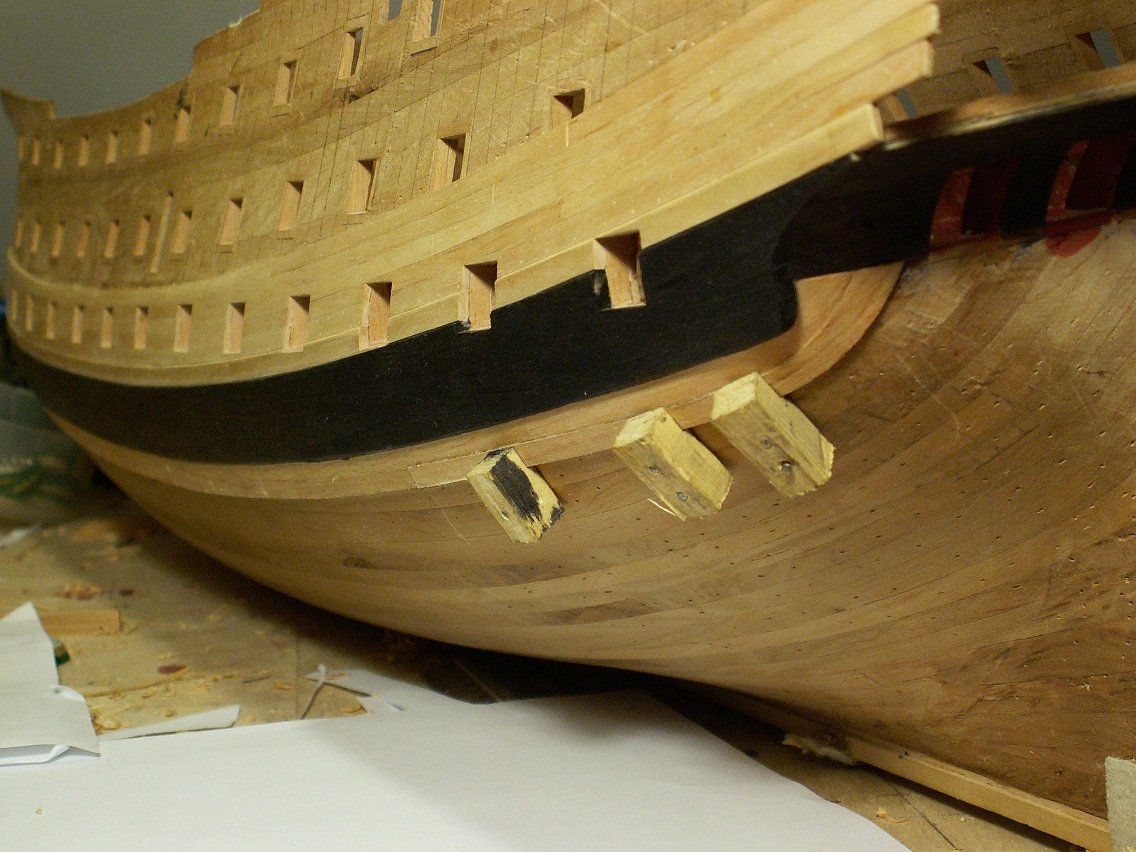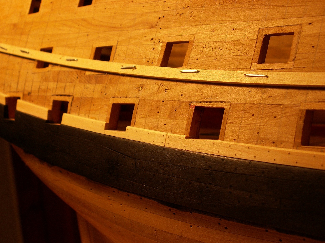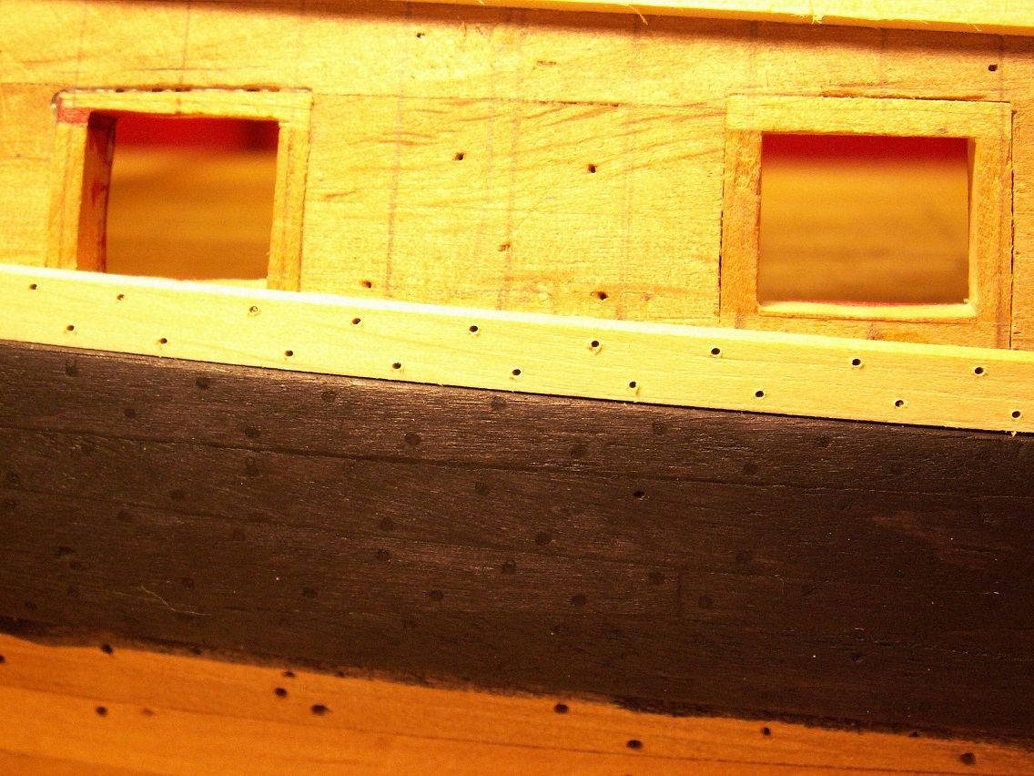 Holendrzy się zbroją, Hiszpanie się zbroją, Francuzy też się zbroją i to jeszcze bardziej, Wenecjanie prawie pływają...w końcu i ja się nieco pozbroiłem. Mam gotowy na obu burtach jeden z passów cieńszego poszycia, stan taki jak poniżej na fotkach