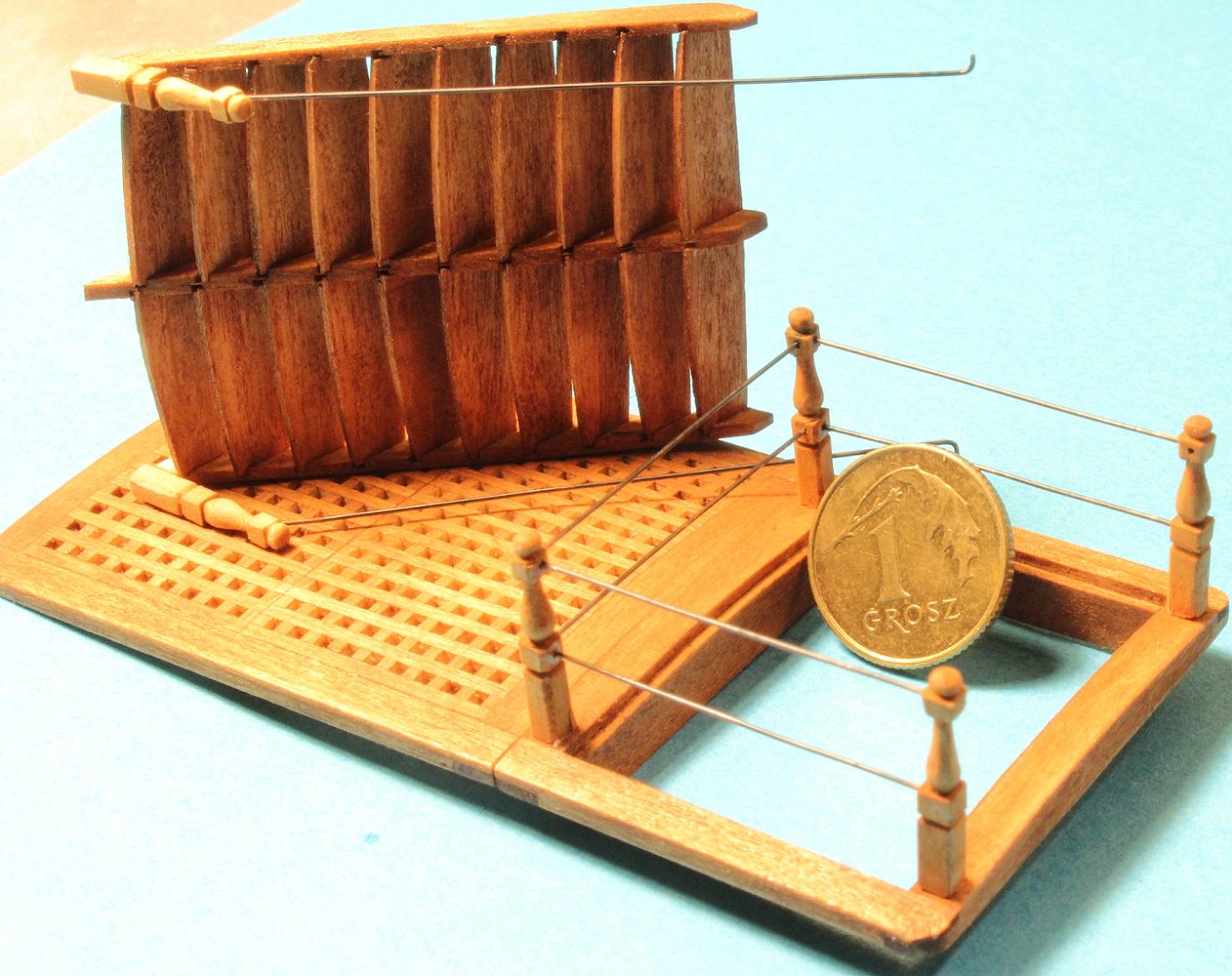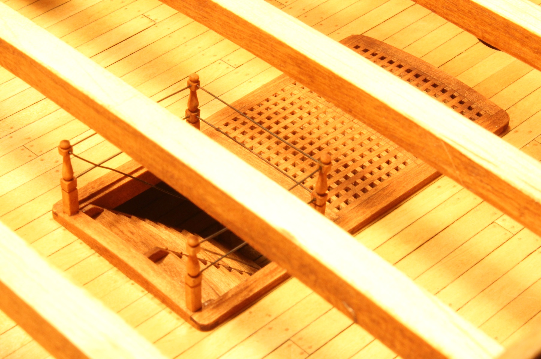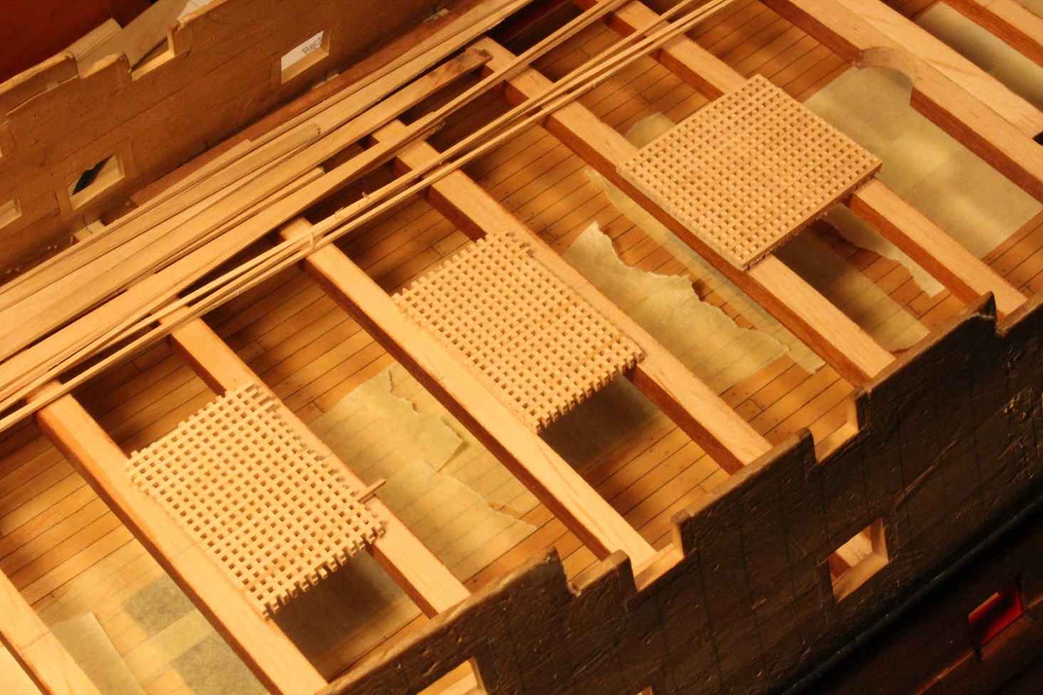 Pierwszy trap mam. Same męki były przy wkładaniu. W końcu trap wepchałem innym lukiem i montowałem od wewnątrz (od I pokładu bateryjnego). Zupełnie jakbym robił "butelkowaca" ... i przy wkładanie się skrzywiło.Ogólnie to cały trap będzie niewidoczny, przykryje go III pokład bateryjny. No może, szczątkowo będzie go widać.