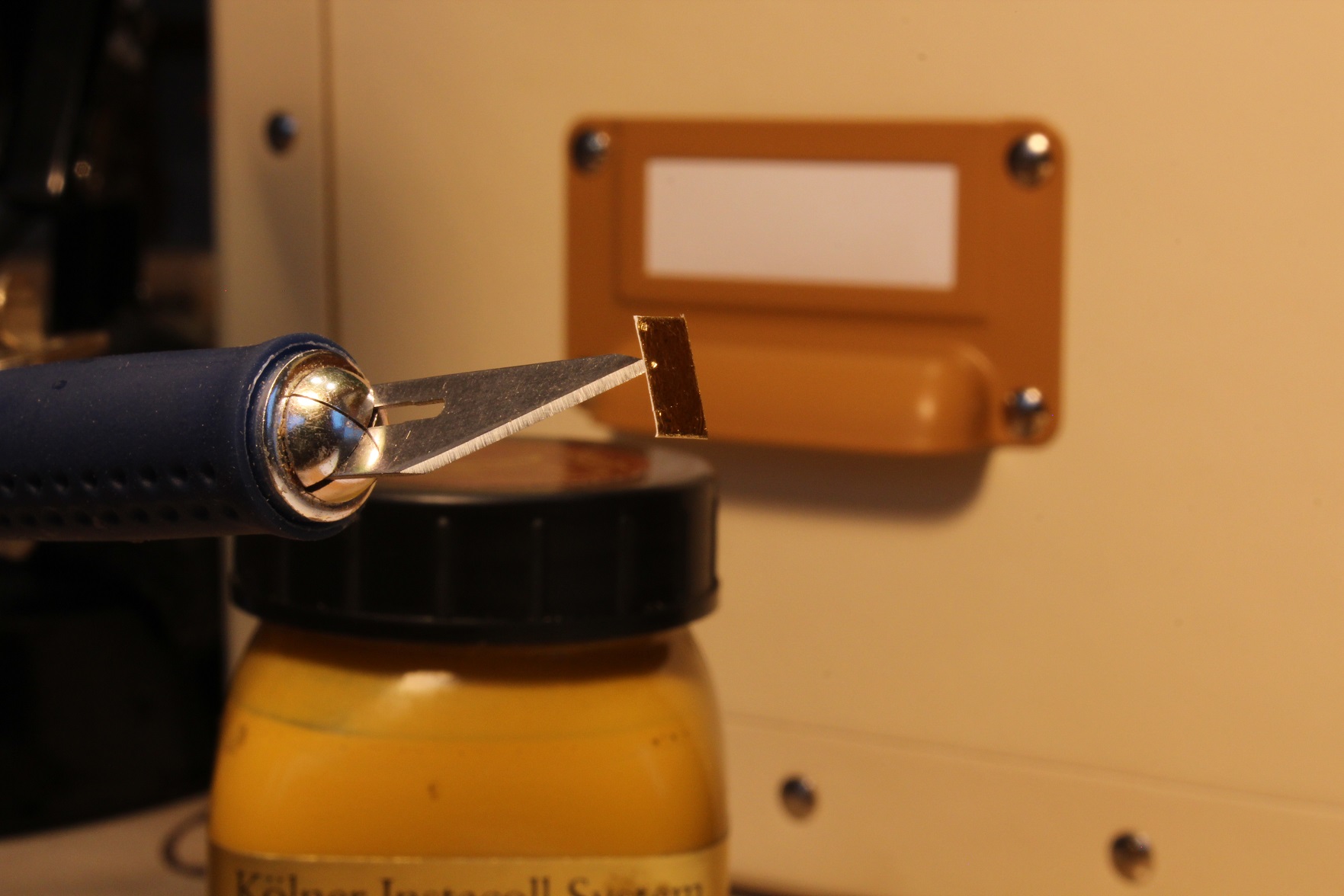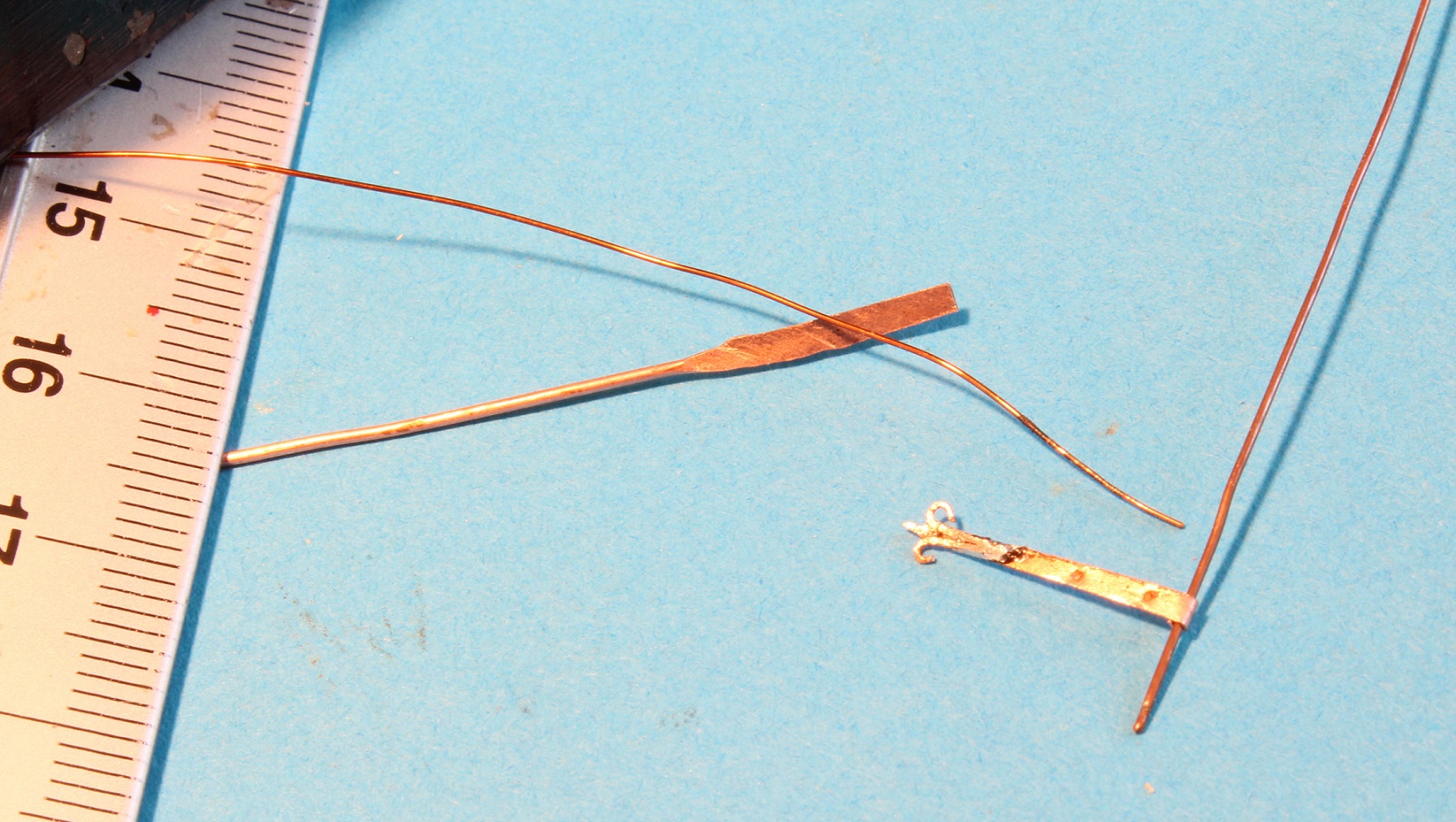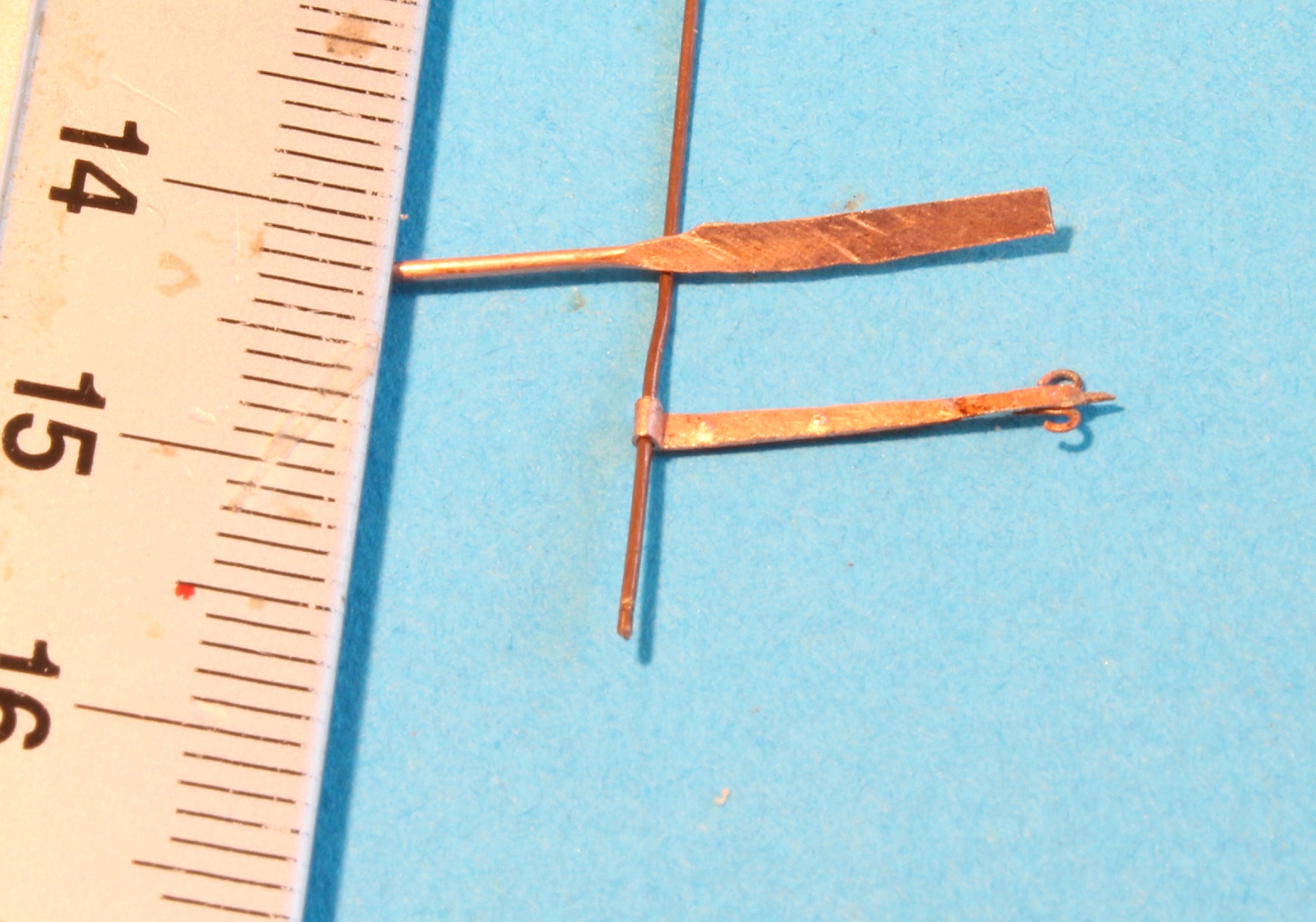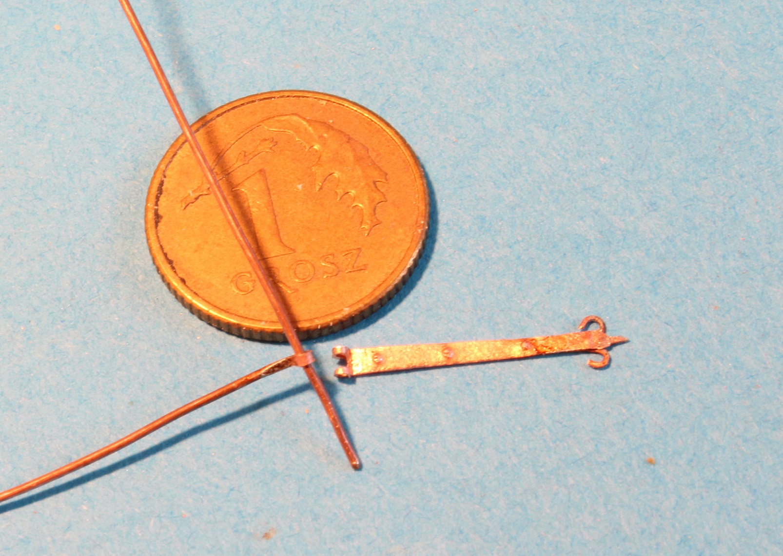 1) prawa i lewa strona odkuwki zawiasu, płaskownik zawiasu odkuwam z drutu miedzianego 0,7mm