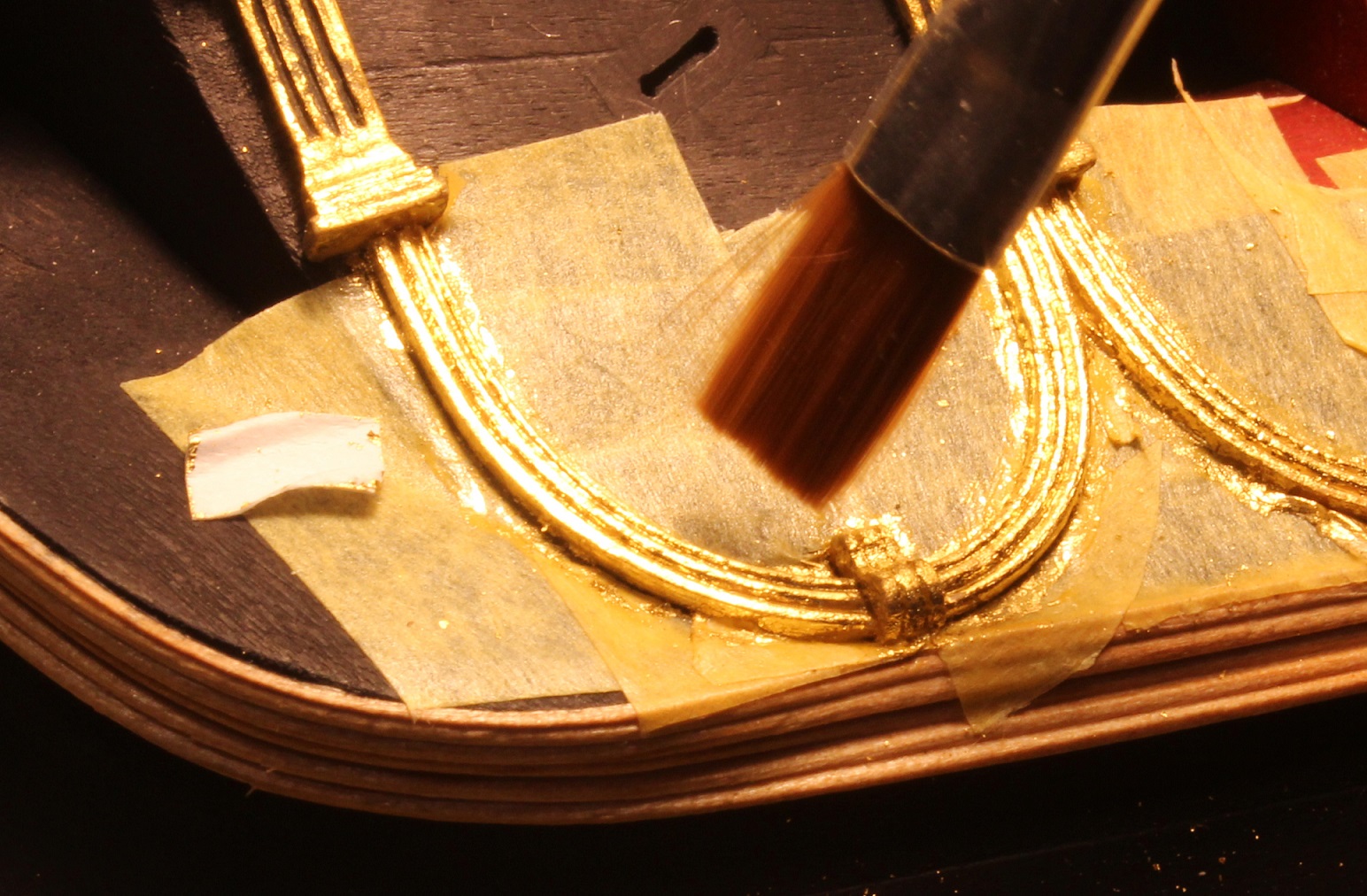 To maskowanie wokół detali też zbyteczne, bo nawet jak trochę złota "przylgnie" do tła, to bardzo łatwo usuniesz sztywniejszym pędzelkiem.