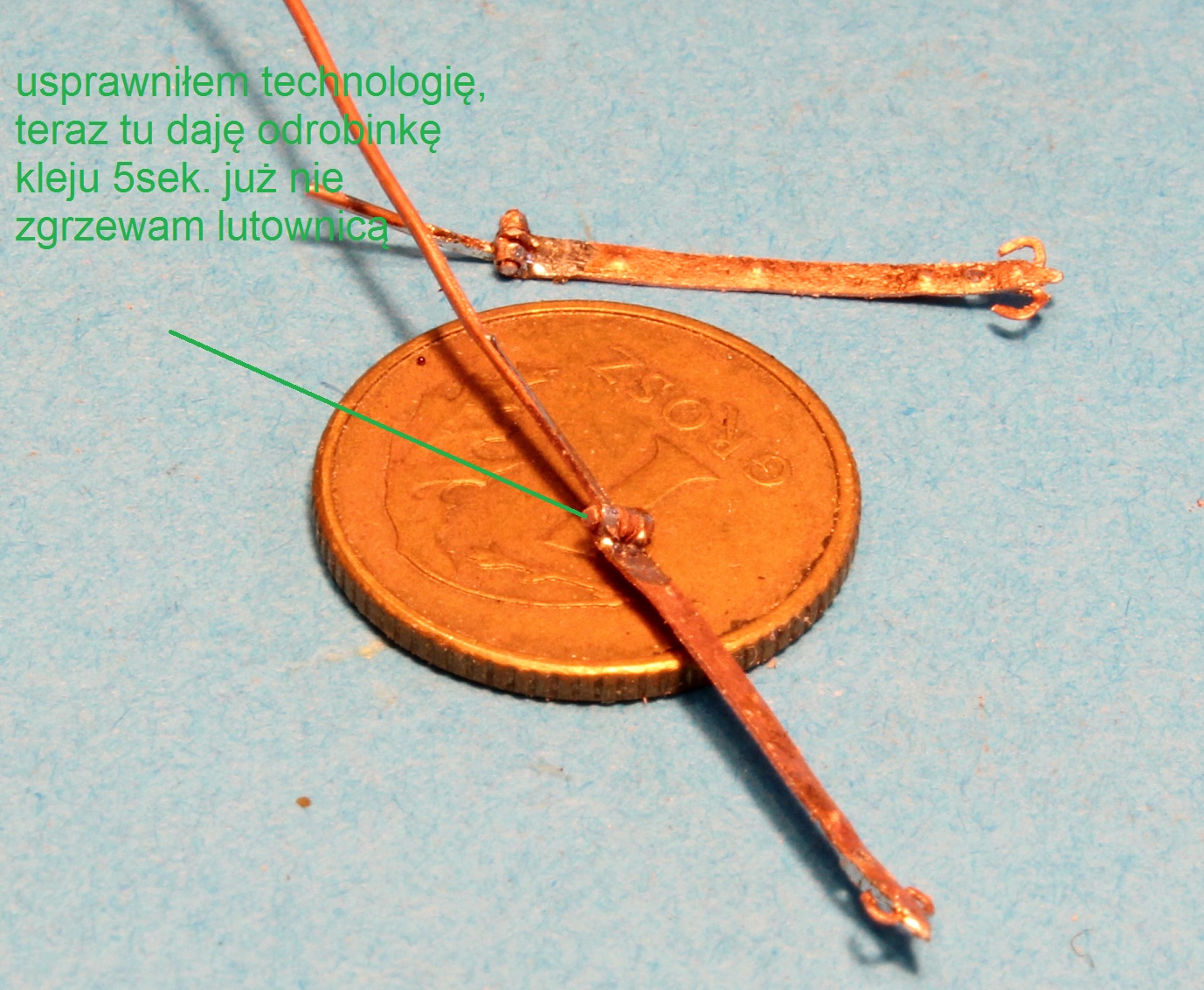 Strugam nowego, niewygodnie idzie, bo muszę na łuk dłubać. Lekko podgięte to mam na lutownicy. Nowy wygląda tak jak niżej. Szkoda bo mi ręka drgnęła i kawałek nosa mu urwałem:(