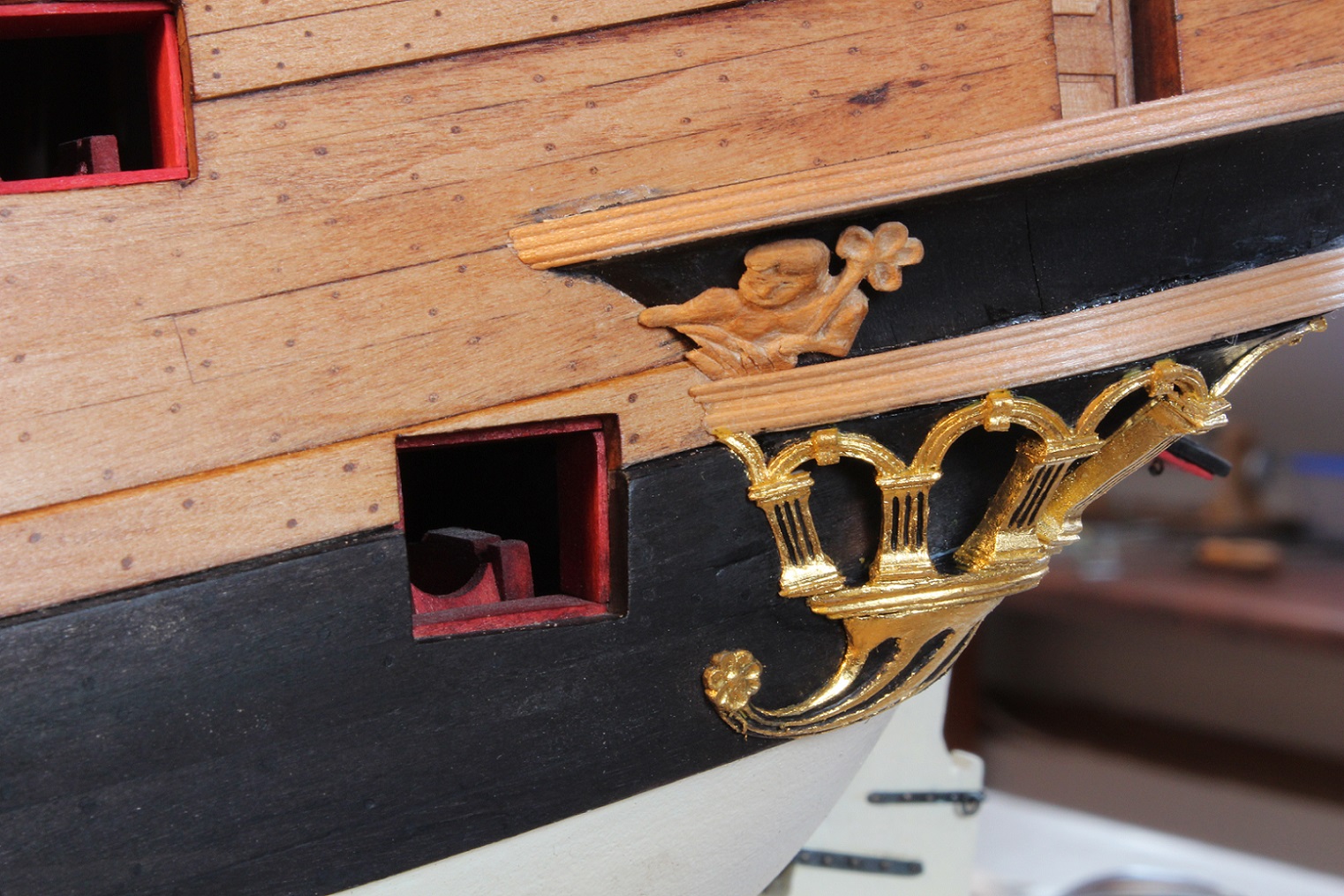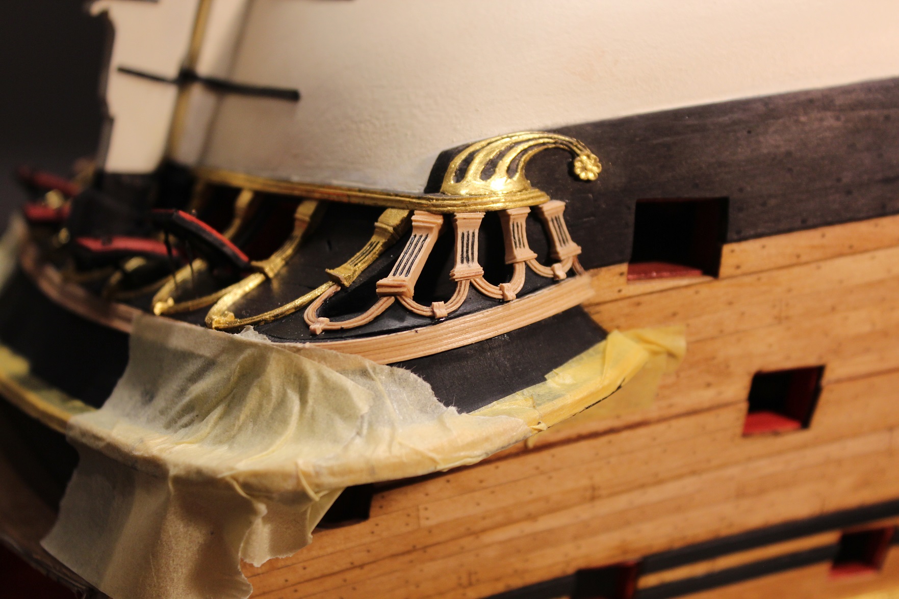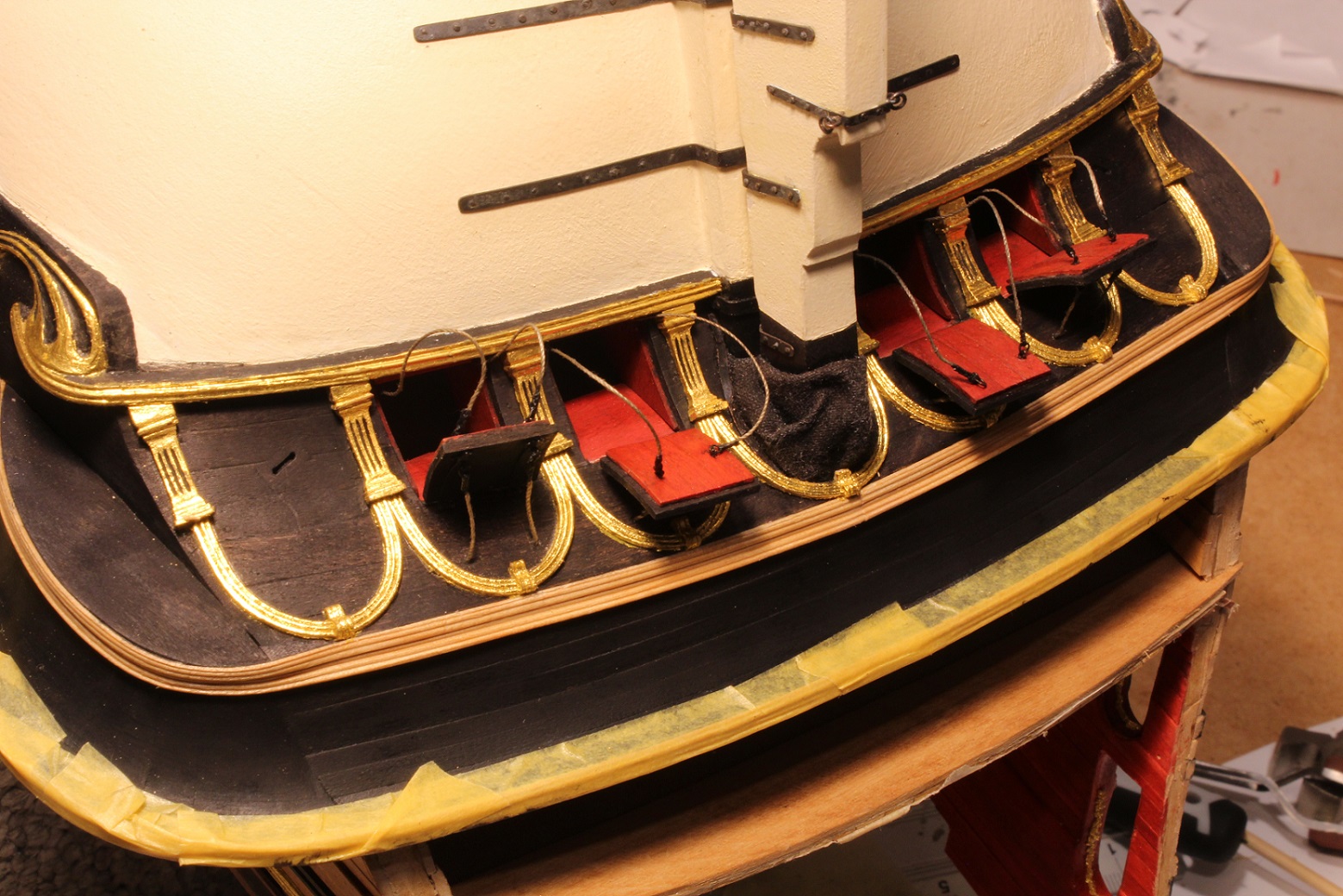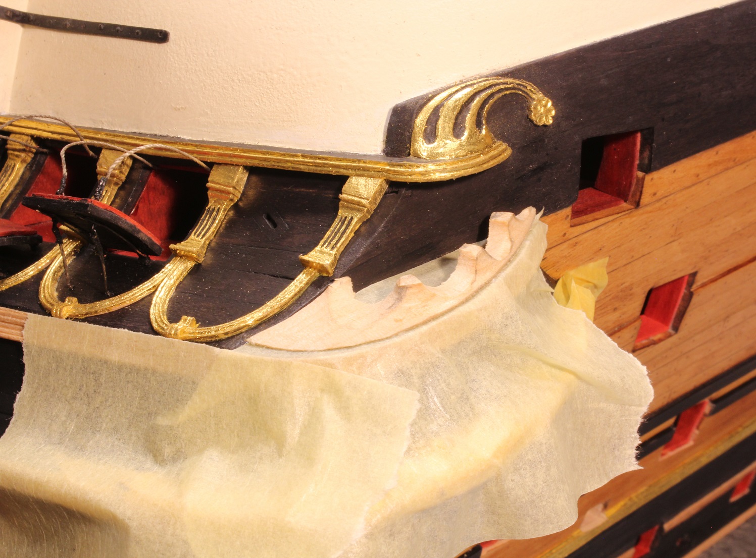 Na RW szykuje sobie "koronę" pod nawisem lewego kingstonu. Kłopotliwe będą i są listwy ozdobne. Wstępne prace poniżej