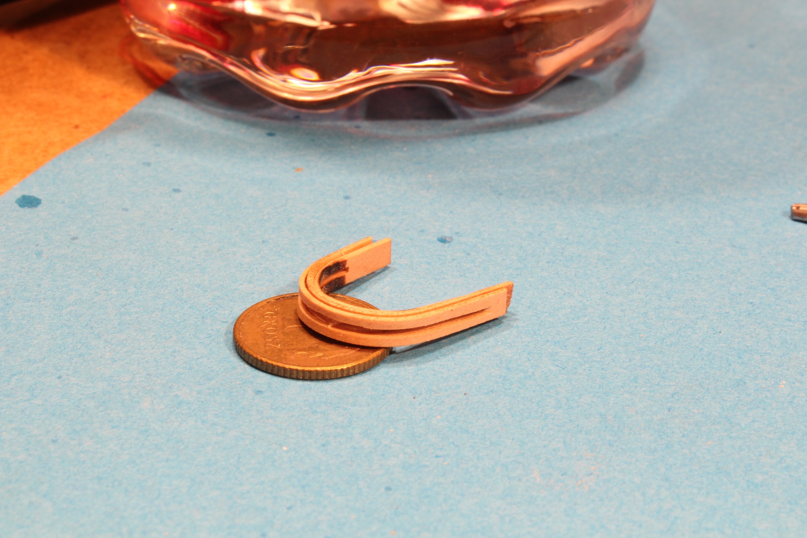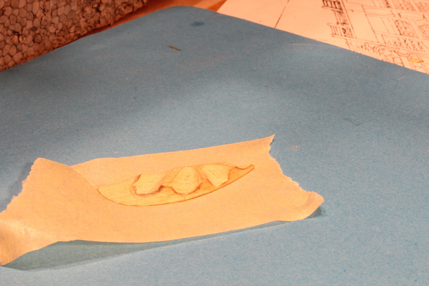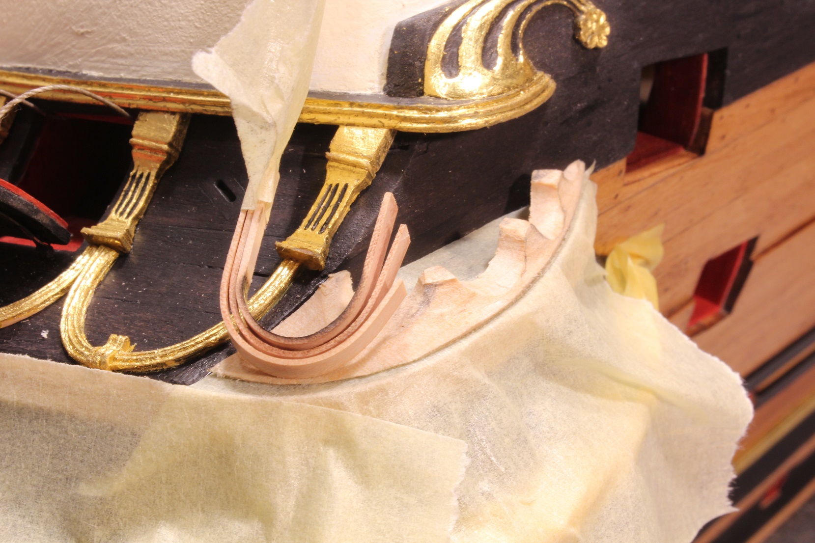 Jeszcze jest sporo roboty przy tym elemencie, ale łuki pasować będę na tak wstępnie przyklejonym do taśmy elemencie