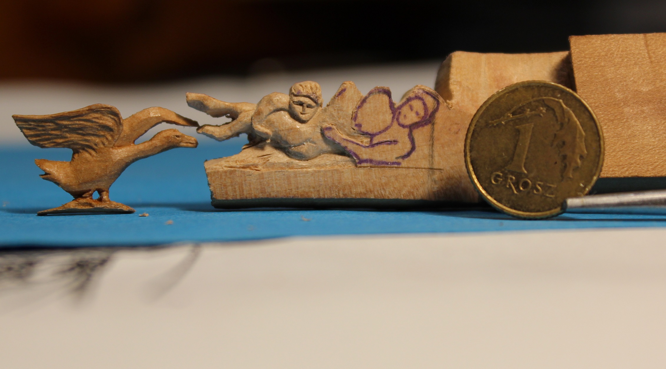 Zacząłem robić podmiany tego co wcześniej zrobiłem. Dłubię ponownie łabędzia lub gęś. Zacząłem od ptaka, bo ma największe krzywizny