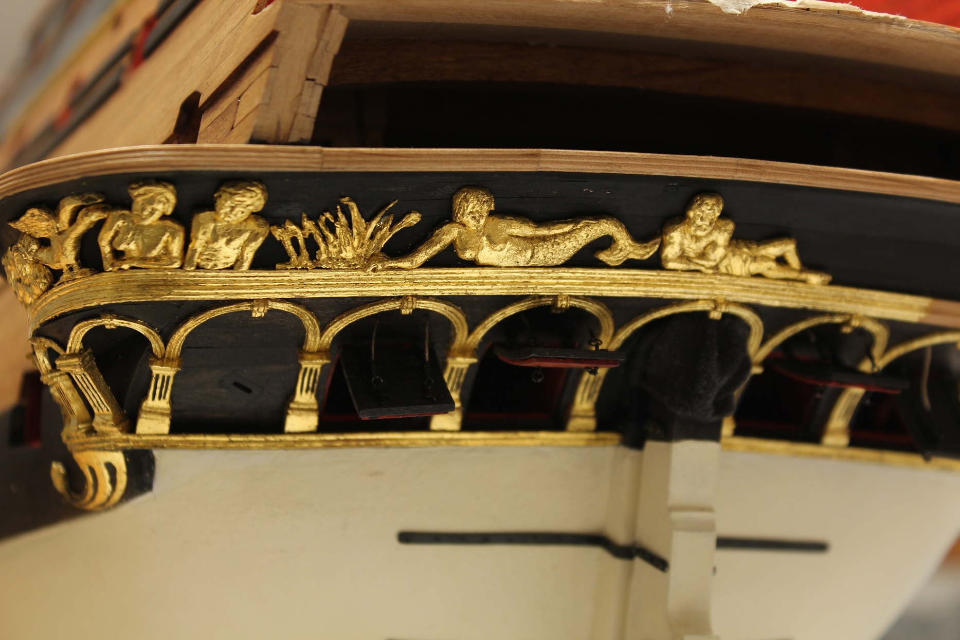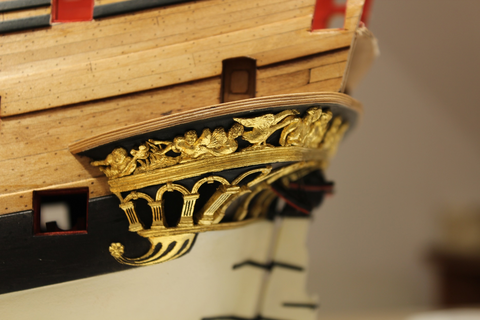 Wrzucę jeszcze przymiarkę kilku elementów. Jak patrzę wstecz, to teraz żałuję, że od razu nie zabrałem się na te rzeźbienie po łukach, wymagało to tylko nieco więcej wysiłku. Czasu mi tak nie szkoda, jak tego złota co poszło na odlewy żywiczne. Jeszcze tylko trawa i gościu z gałązka plus złocenia i będę na etapie sprzed kilku tygodni