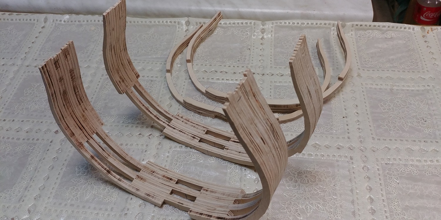 Przylaczam sie do zdania Kolegow, ze sklejka na ten cel to niezbyt dobry material - lepsze byloby jakies drewno owocowe, czy chocby brzoza lub olcha, no ale byc moze taki akurat miales material do swego modelu i jesli zamierzasz potem Twe wregi pokryc plankami, to bedzie OK.