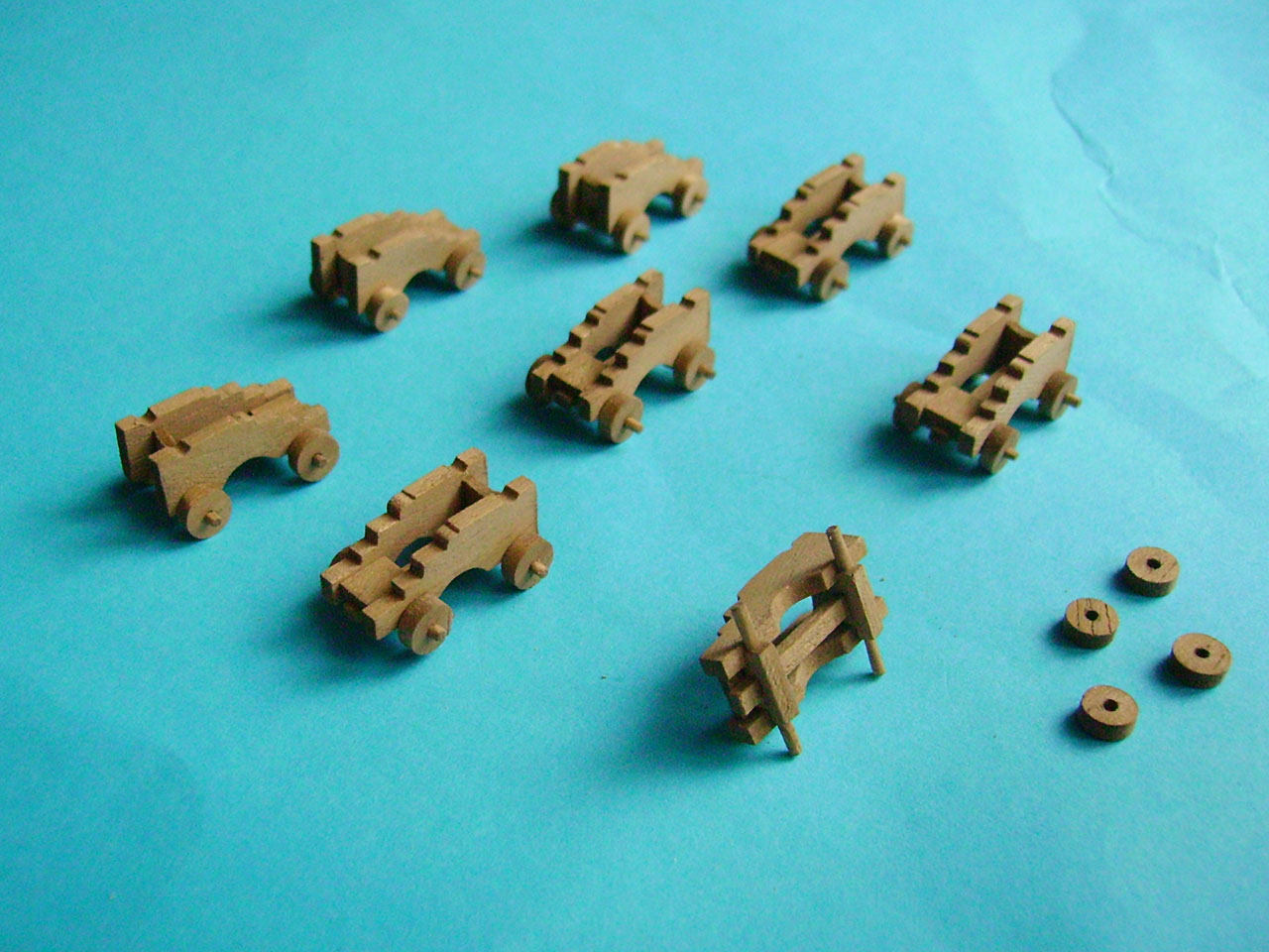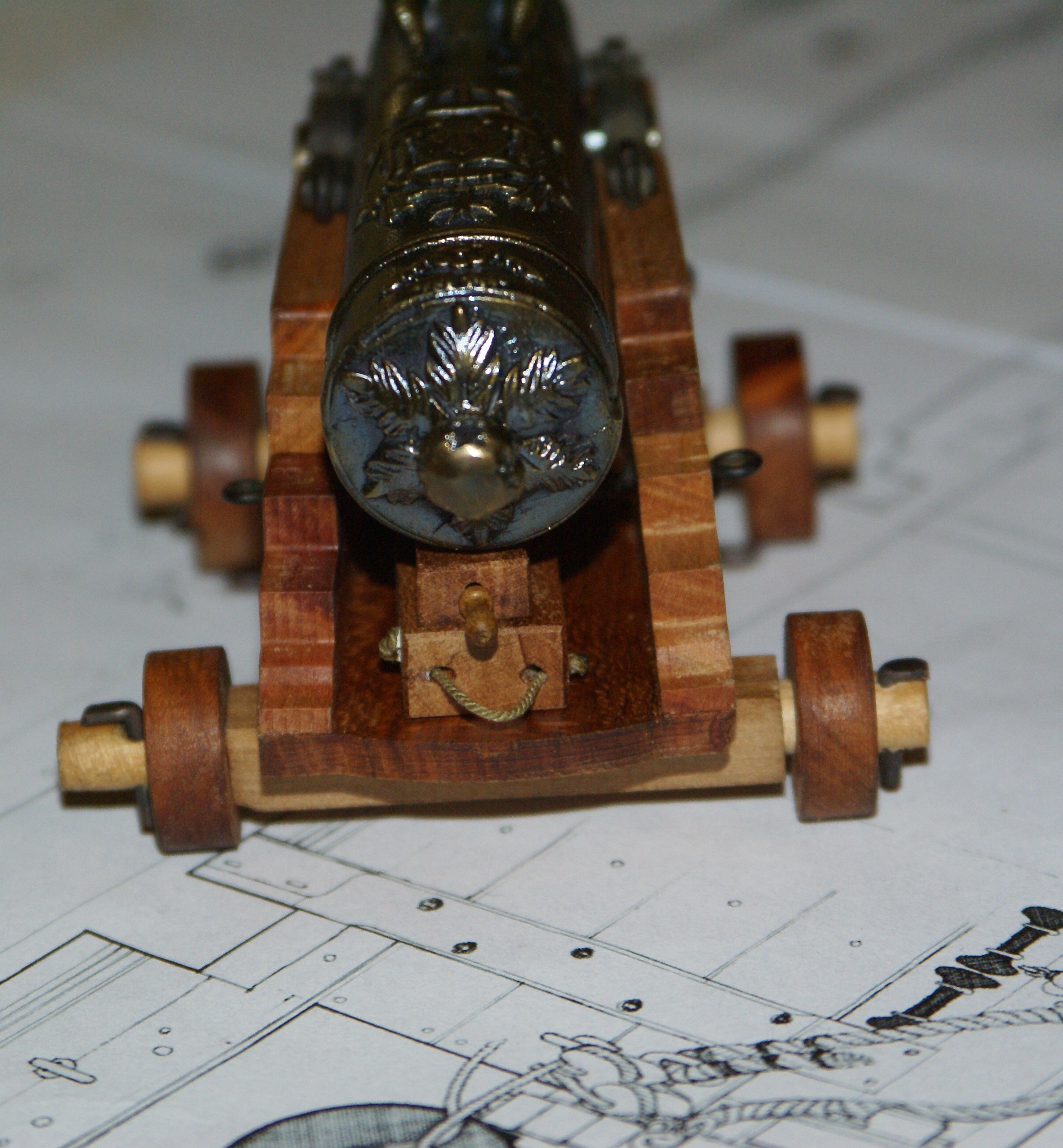 Witam, z tą belką masz racje, powinna wystawać. Moja jest krótsza ale to taki trochę zamierzony błąd po prostu teraz jest mi łatwiej ustawić ten sam prześwit między kołami a deską lawety, niż doklejać na styk do kwadratowej części belki. Szczelina ma jakieś 0,2-0,3mm więc nie za dużo tam widać. Mało to profesjonalne ale lawety do prostych nie należą więc trzeba trochę improwizować. Obecnie tak to wygląda po dodaniu szpilek i drucików