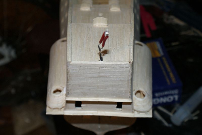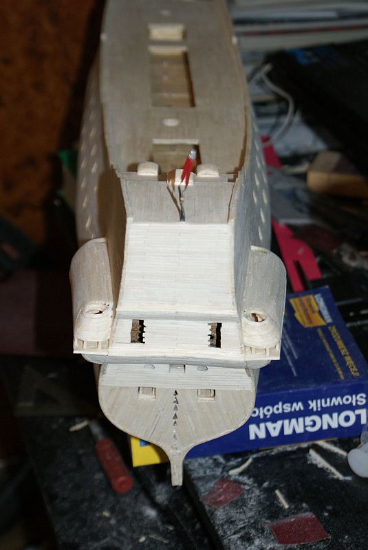 Muszę jeszcze wywiercić 2 otwory na liny do kotwic. 4 szyby na pawęży.