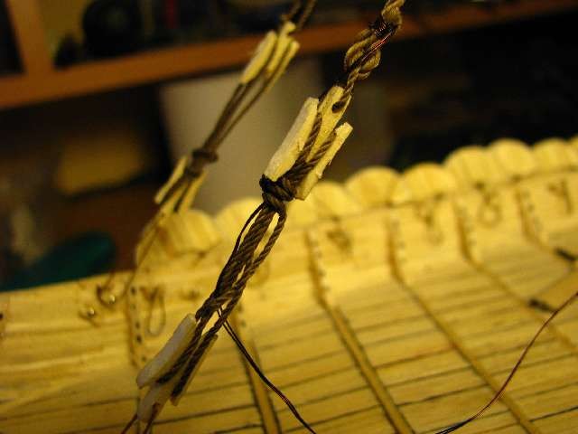 Pokazana przez Ciebie wręga została dopiero co sklejona, po oderwaniu od papieru jest szlifowana i wymiary są doprowadzane do rzeczywistych. wzmocnienie górne będzie i to na pewno oczywiście że tylko na czas budowy. Na wręgach będą jeszcze naklejone listwy podtrzymujące podłogę więc nastąpi wzmocnienie. Nakleję potem kiedy będę montował klepki podłogi. Bardziej się obawiam o końcówki wręg, są bardzo delikatne. A wzmocnienie nie wchodzi w grę gdyż będą na wierzku, jedynie widzę wyjście że będą przyklejone do burt. Albo jest jeszcze jedna alternatywa wprowadzić szpilki w celu wzmocnienia i usztywnienia końcówek. Jak postawię wszystkie wręgi to na wręgi przykleję wzmocnienie tymczasowe aby wręgi się nie przesuwały. Mam zamiar odsłonić jakąś część pokładu w celu pokazania spodniego poszycia, balastu jak i stopy masztu.