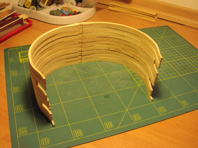 Wykonanie wręg. Dwie warstwy krzywulców z gruszy, sklejonych i oszlifowanych.