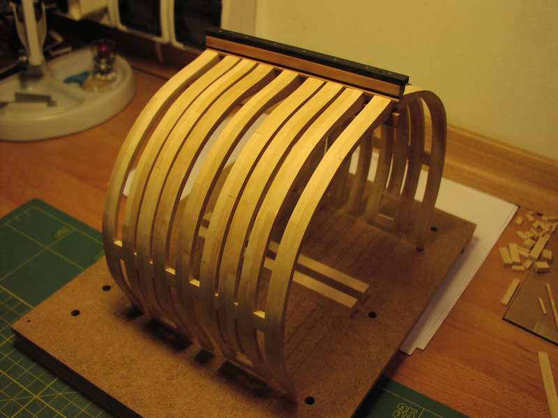 Wykonanie wręg. Dwie warstwy krzywulców z gruszy, sklejonych i oszlifowanych.