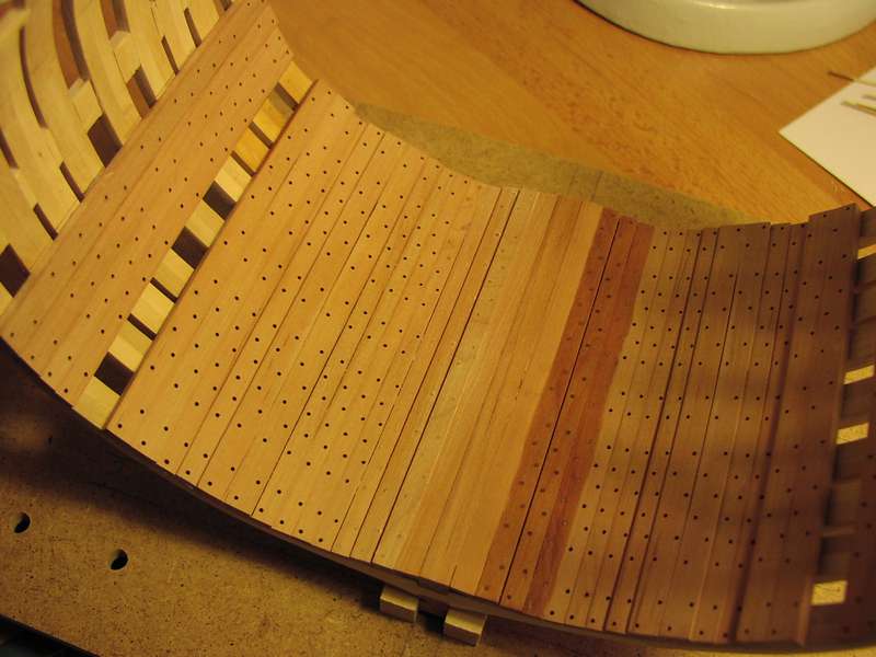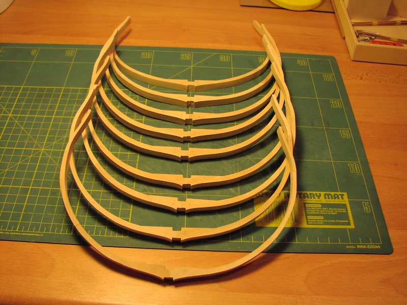 Wykonanie wręg. Dwie warstwy krzywulców z gruszy, sklejonych i oszlifowanych.