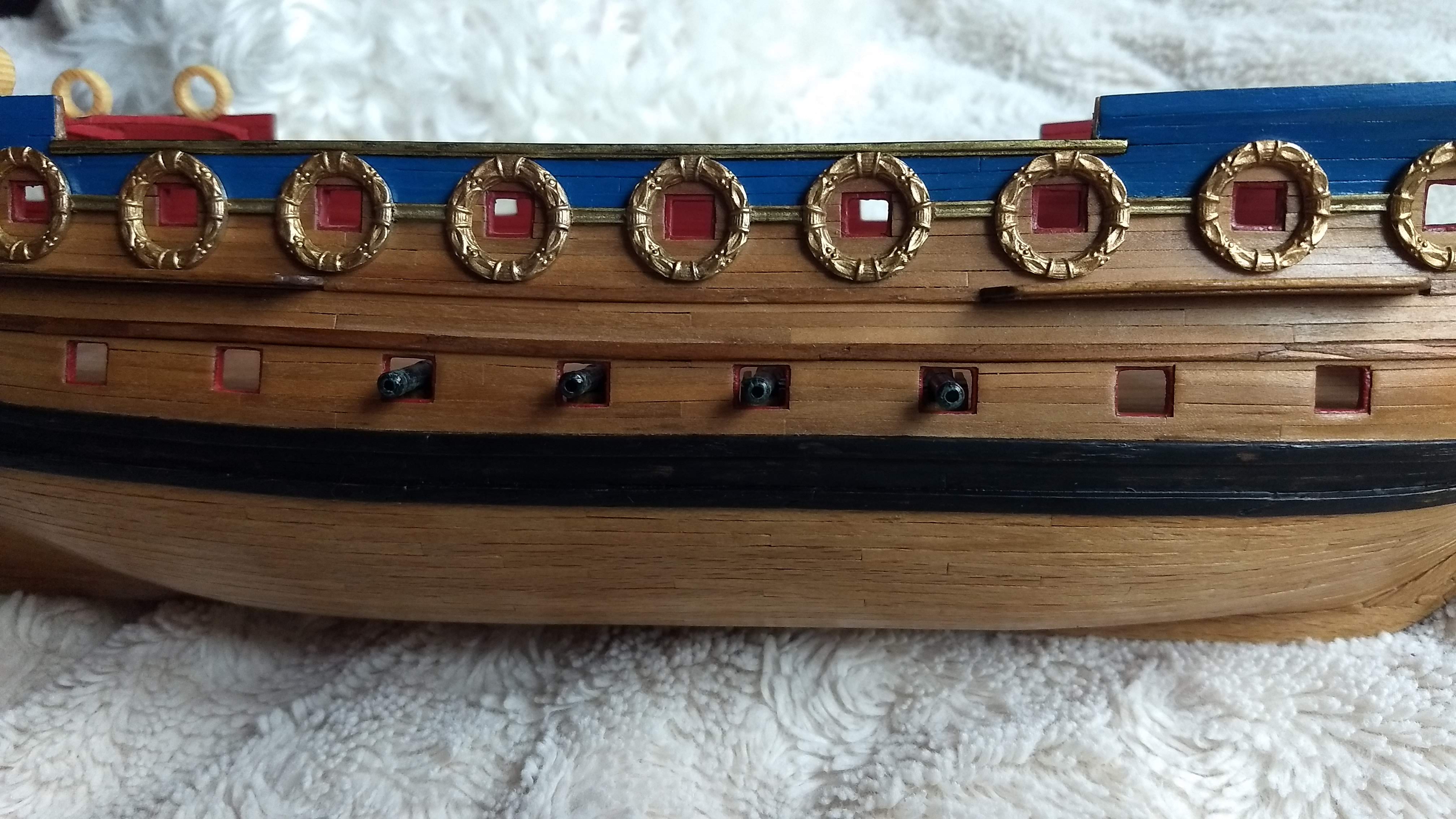 Pytanie czy właśnie przemalowywać na podobny kolor ? Czytałem trochę o artylerii angielskiej i polskiej z podobnego okresu i wiem że wykonywano je z brązu lub w dalszych latach z żeliwa (żelaza) Wnioskując po roku budowy okrętu myślę że wykonano je z żelaza ale nie jestem pewny, więc proszę o pomoc.