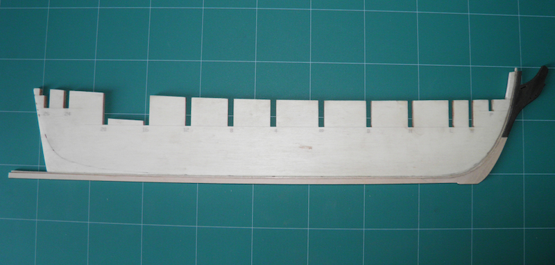 Wyszlifowałem pokład, wkleiłem wypełnienie na przodzie i przeniosłem się do wygodniejszej stocznii.